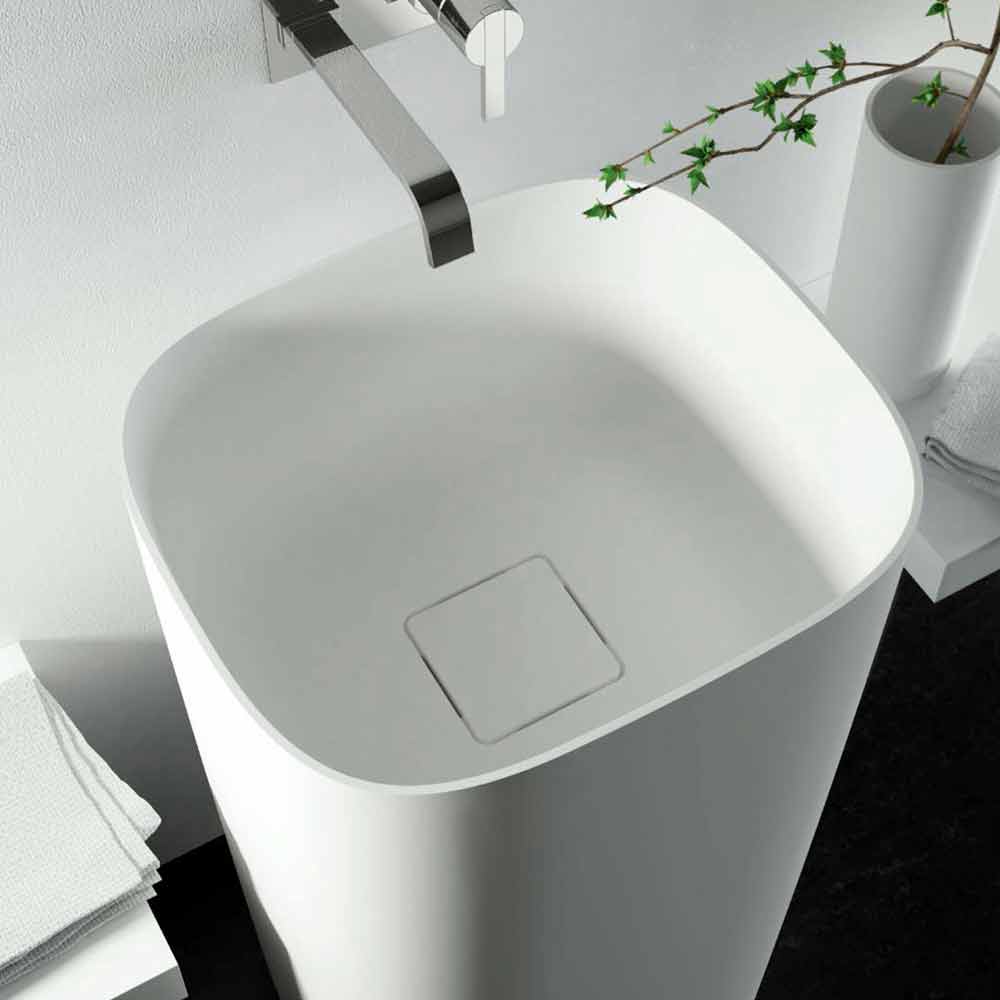 Lallio este o chiuvetă rotundă și freestandă, cu un design minimal și liniar.