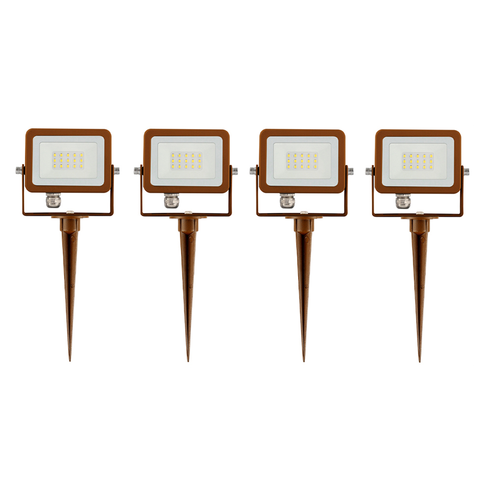 Proiector led de exterior din aluminiu cu finisaj corten, 4 piese.