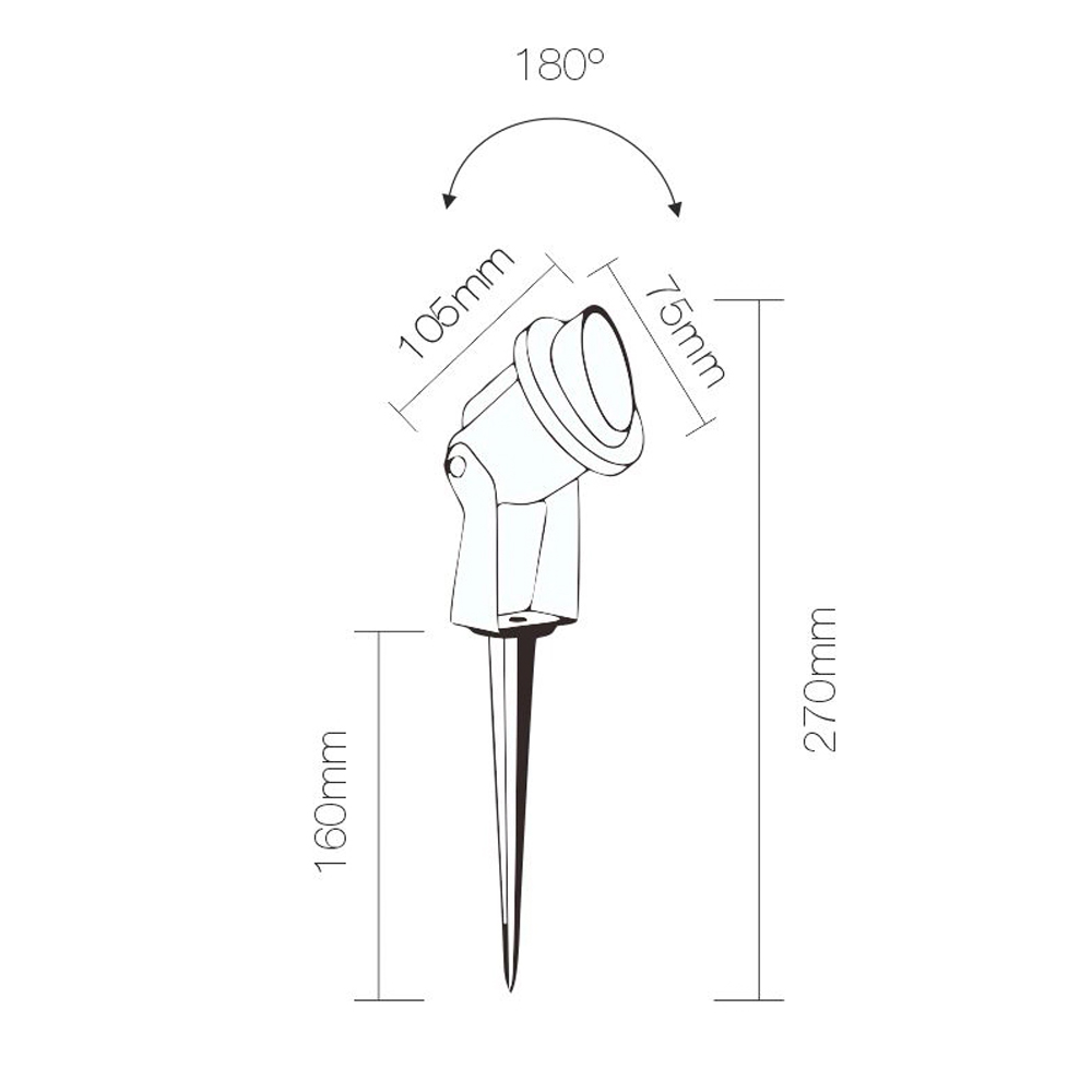 Spot în aer liber cu structura din aluminiu turnat negru complet cu LED 3W cu corp reglabil la 180°. Un spot LED pentru utilizare in exterior cu varf de inglobat in pamant cu un design modern si versatil ce proiecteaza un fascicul de lumina diferit in functie de necesitati datorita posibilitatii de orientare a acestuia in functie de nevoile tale. Ideal pentru iluminarea plantelor, copacilor, paturi de flori in interiorul spatiilor exterioare precum gradini atat in spatii domestice cat si in medii contract.