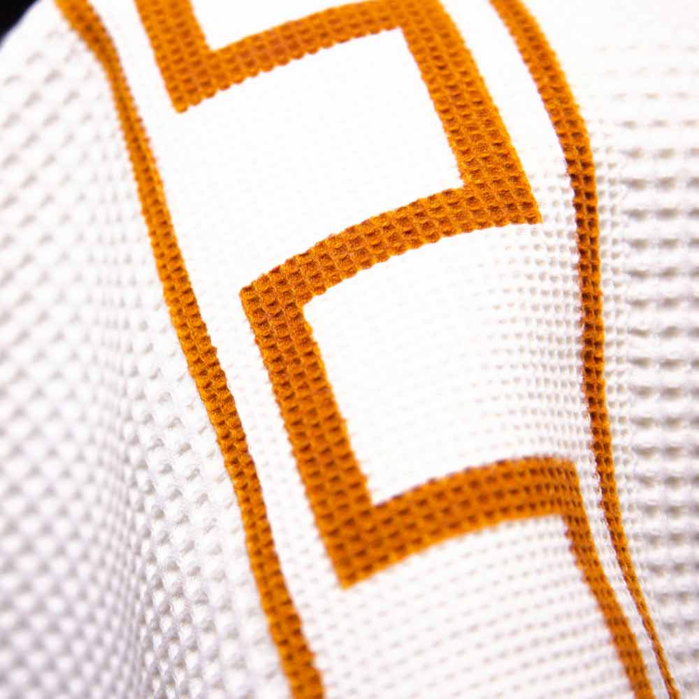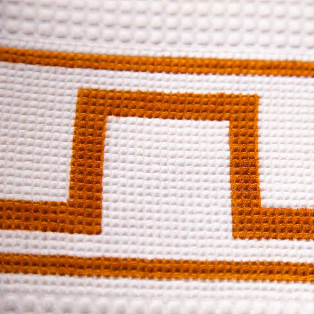 Prosop de baie din bumbac alb pur, cu imprimeu grecesc, pompeian, colorat în rugină, creație făcută manual în Italia, piesă unică.