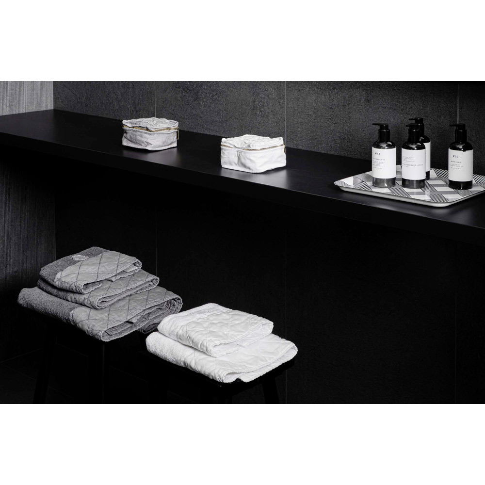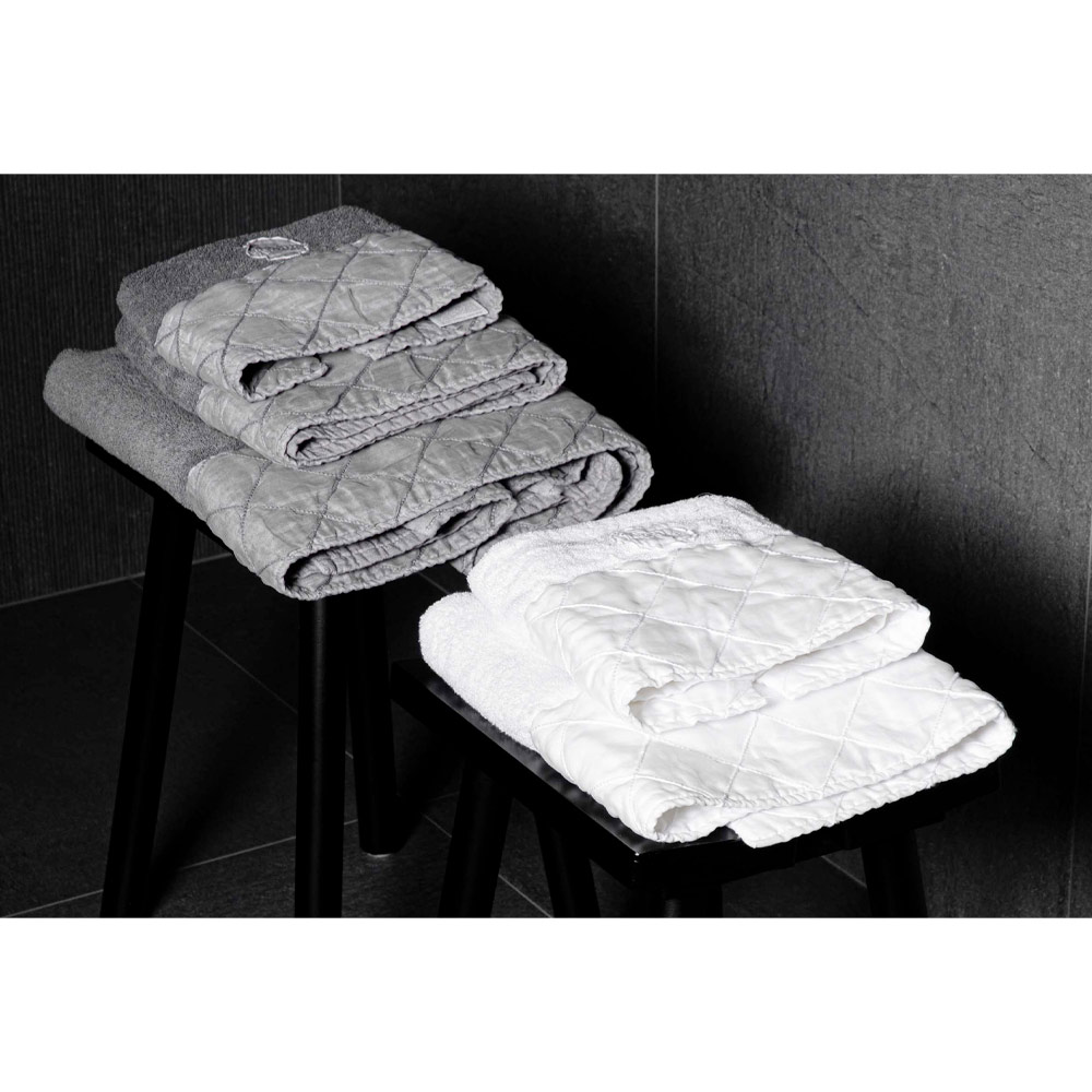 Valoarea tradiției se alătură stilului de viață modern cu prosopul de față din bumbac alb, cu decor geometric .