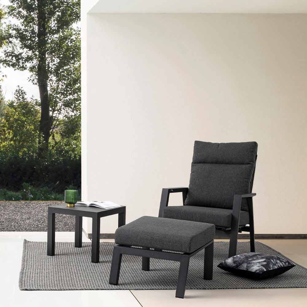Puf de sprijin pentru picioare din aluminiu vopsit cu pernă detașabilă.