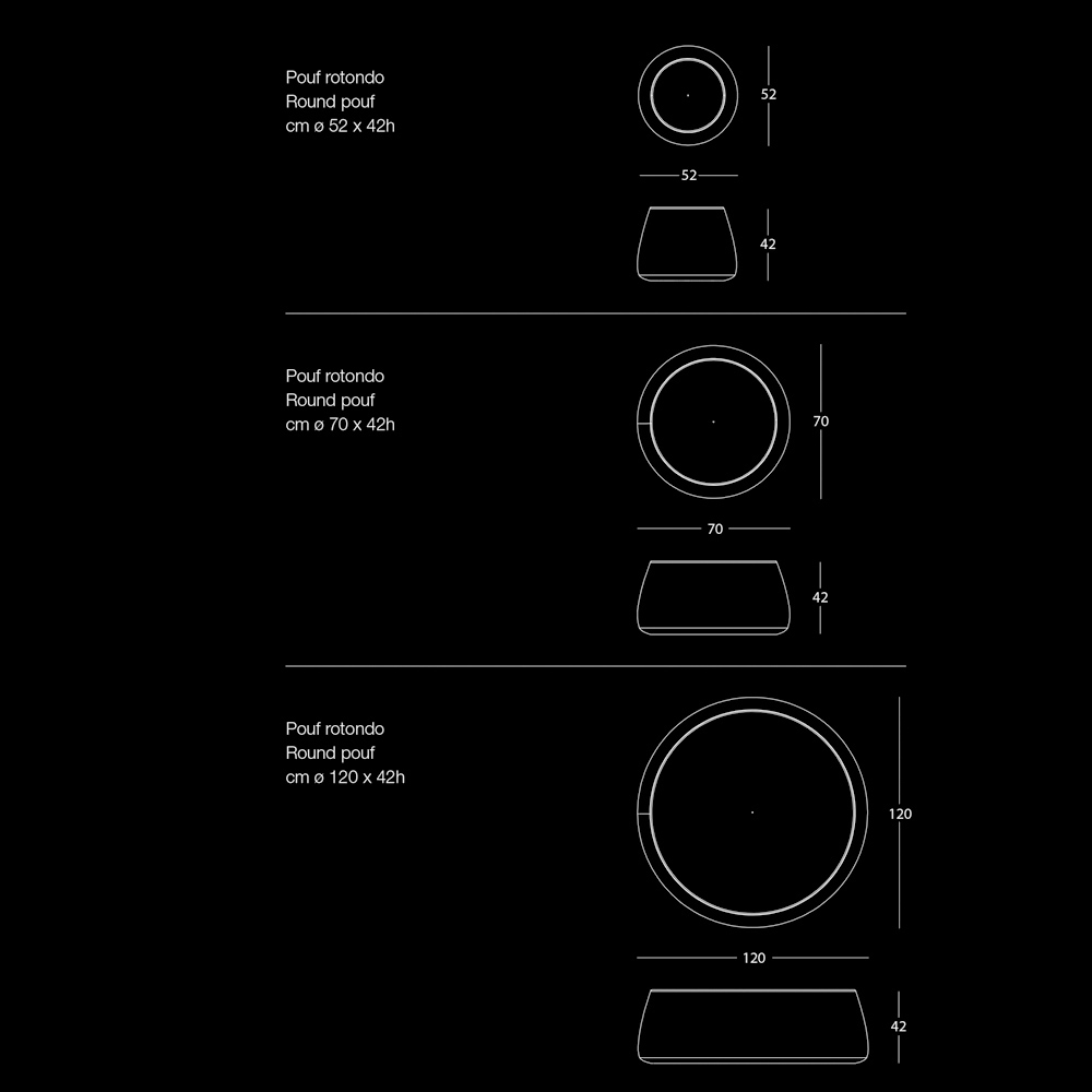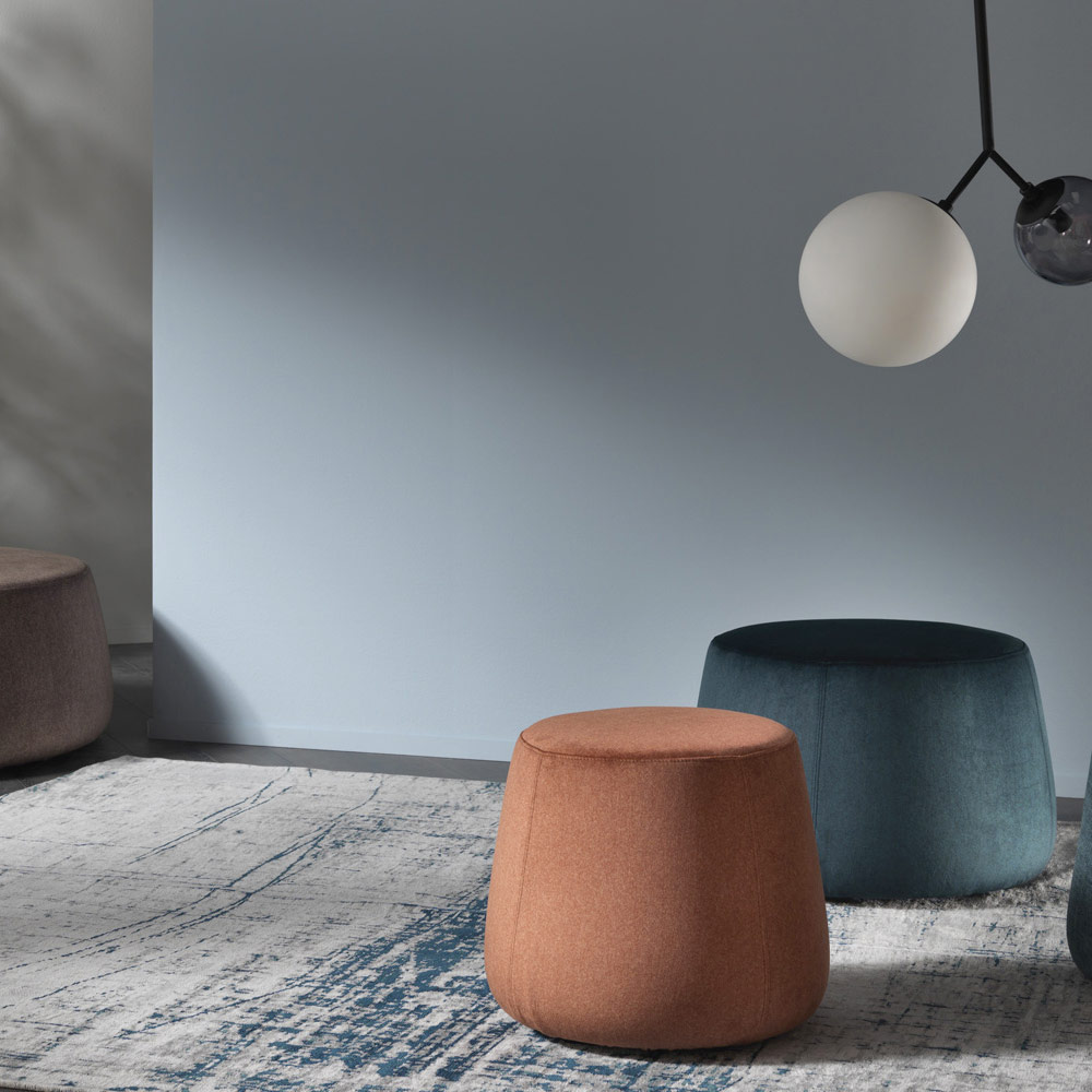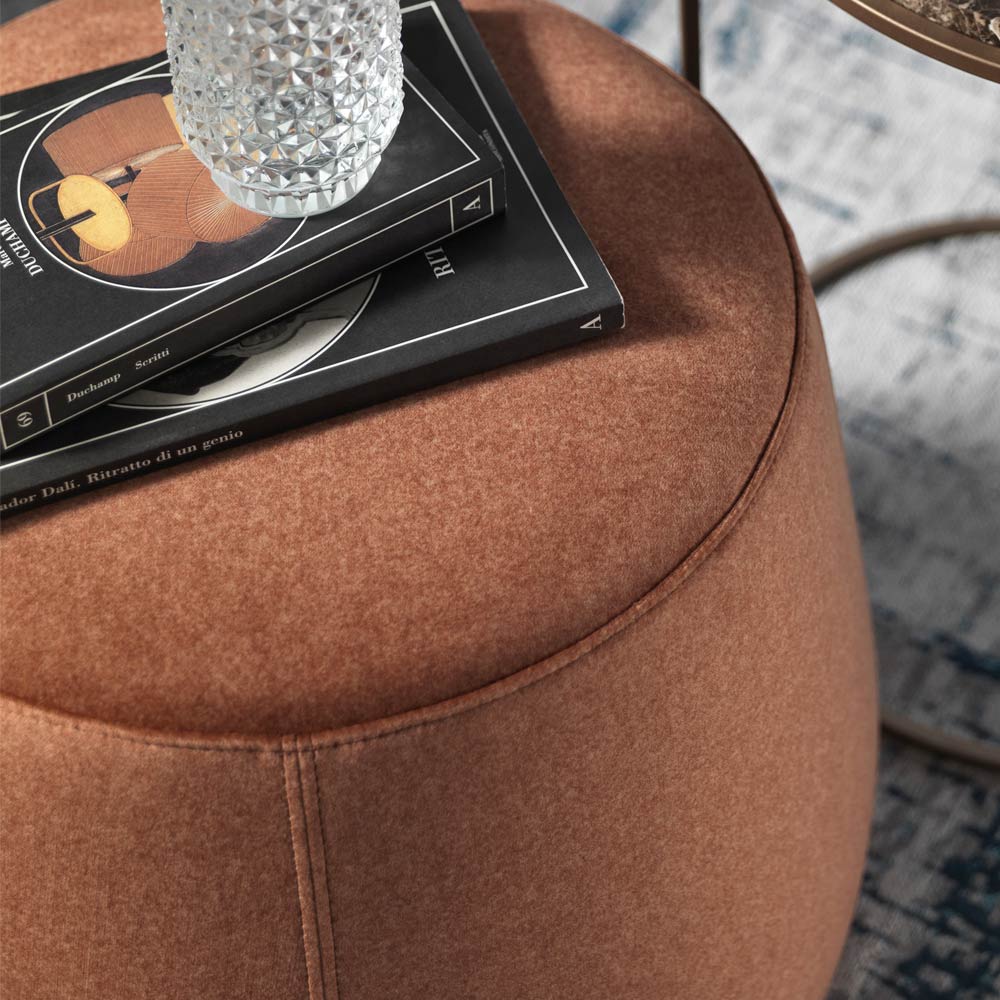 Puful de design modern și rotund disponibil în trei lățimi diferite este complet acoperit cu catifea moale detașabilă disponibilă în 6 finisaje.