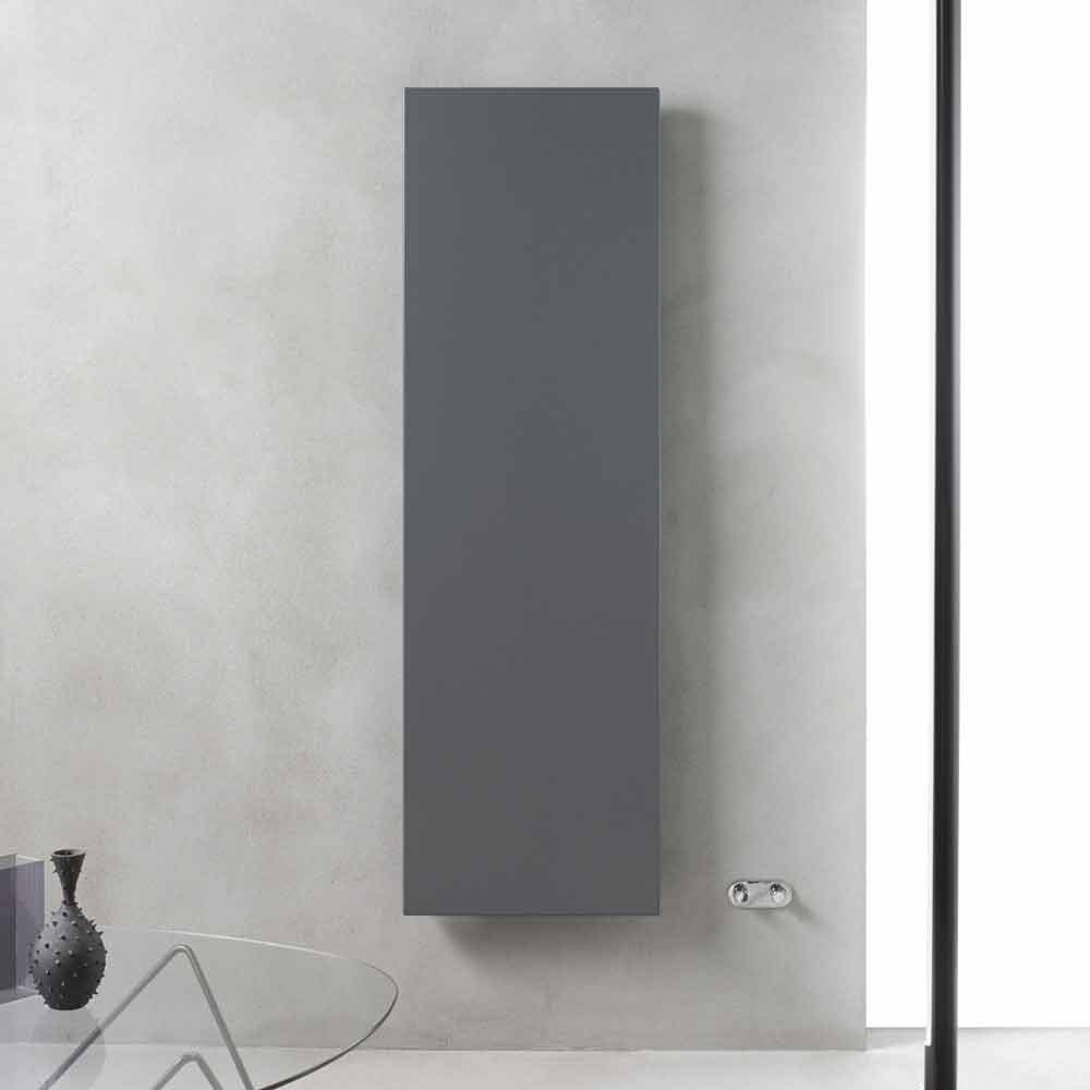 Radiator vertical montat pe perete, din oțel gri ardezie, fabricat în Italia.