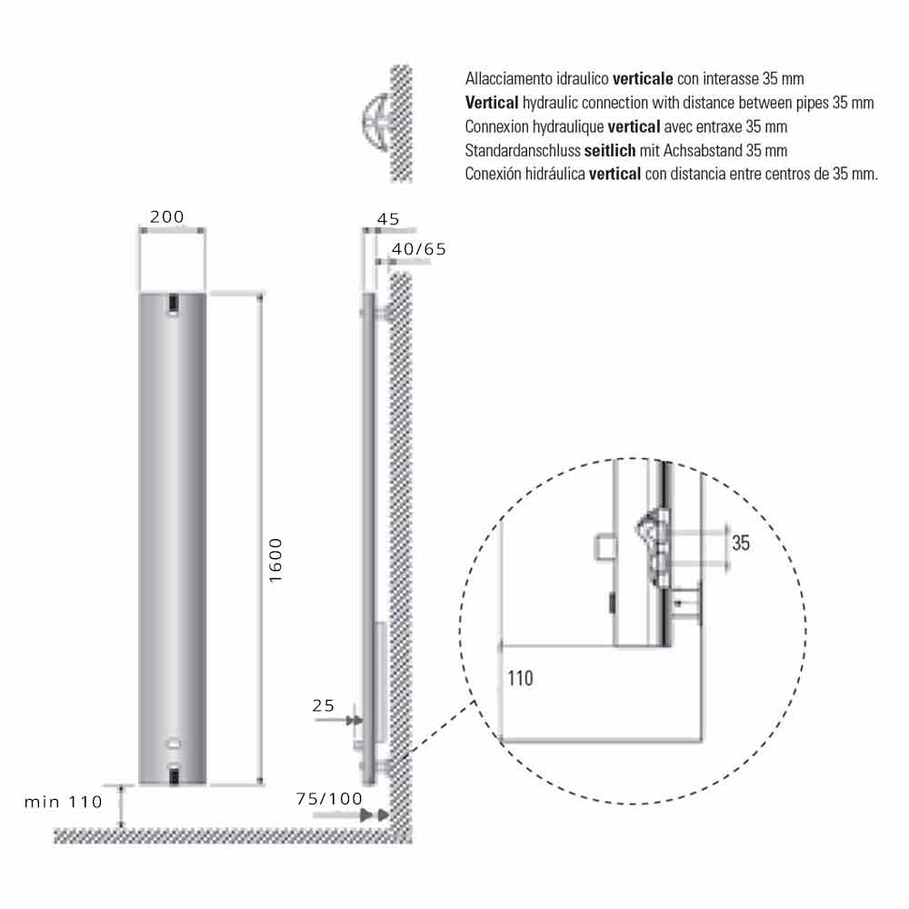 NB: Supapele și suportul sunt excluse, pentru a le primi scrieți-ne în formularul „Solicitați informații”. Disponibil la cerere și cuierul din oțel inoxidabil satinat, neincluse în preț.