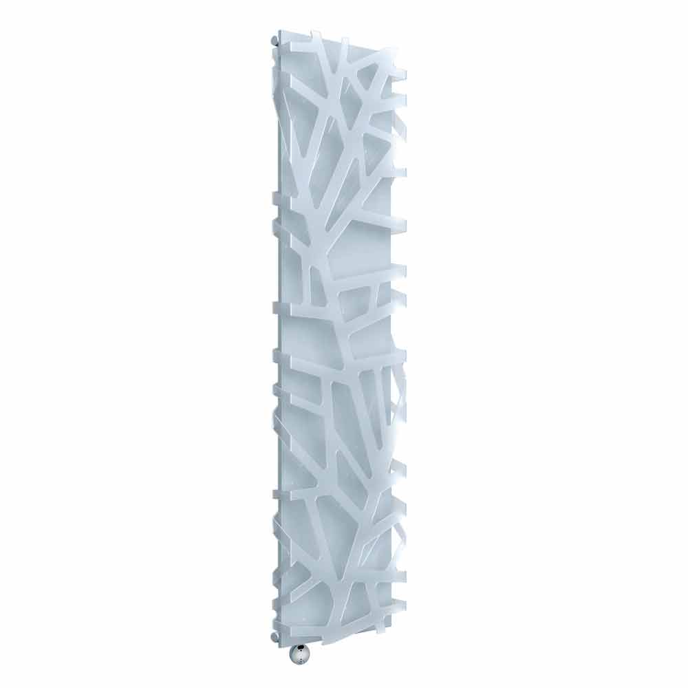 Radiator electric vertical de perete, de design modern, din oțel și metacrilat, fabricat în Italia.