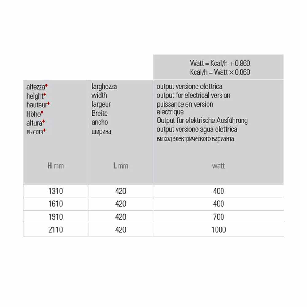 - H 1800 x L 420 x Inter. 50 mm x Randament w 700;