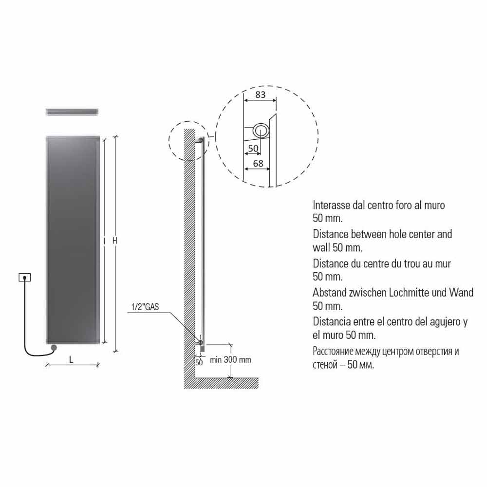 Rețineți că termostatul de 110 mm trebuie adăugat la înălțime. Cutie termostatică albă ca standard pentru calorifere albe; crom pentru radiatoarele colorate și finisajele din oțel inoxidabil. Alimentare monofazată de 230 volți.