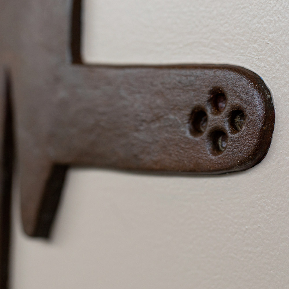 - gondolă cu fier corten și cui roșu