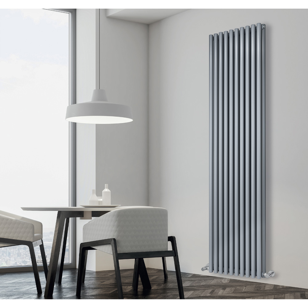 Radiator hidraulic din oțel carbon cu finisaj gri pentru geam, format dintr- o serie dublă de elemente verticale cu diametrul de 3,5 cm, sudate pe distribuitoare orizontale cu diametrul de 3,5 cm, fabricat în întregime în Italia, cu kit de fixare pe perete, robinet de aerisire și capac orb incluse . Este creat într-o fabrică din Treviso, la câțiva kilometri de Veneția, bazată pe valorile profesionalismului, cunoștințelor și experienței , pentru a garanta toate calitățile măiestriei Made in Italy . Designul și funcționalitatea se îmbină pentru a crea un produs frumos, ușor de utilizat și eficient, care completează mobilierul oricărui spațiu.