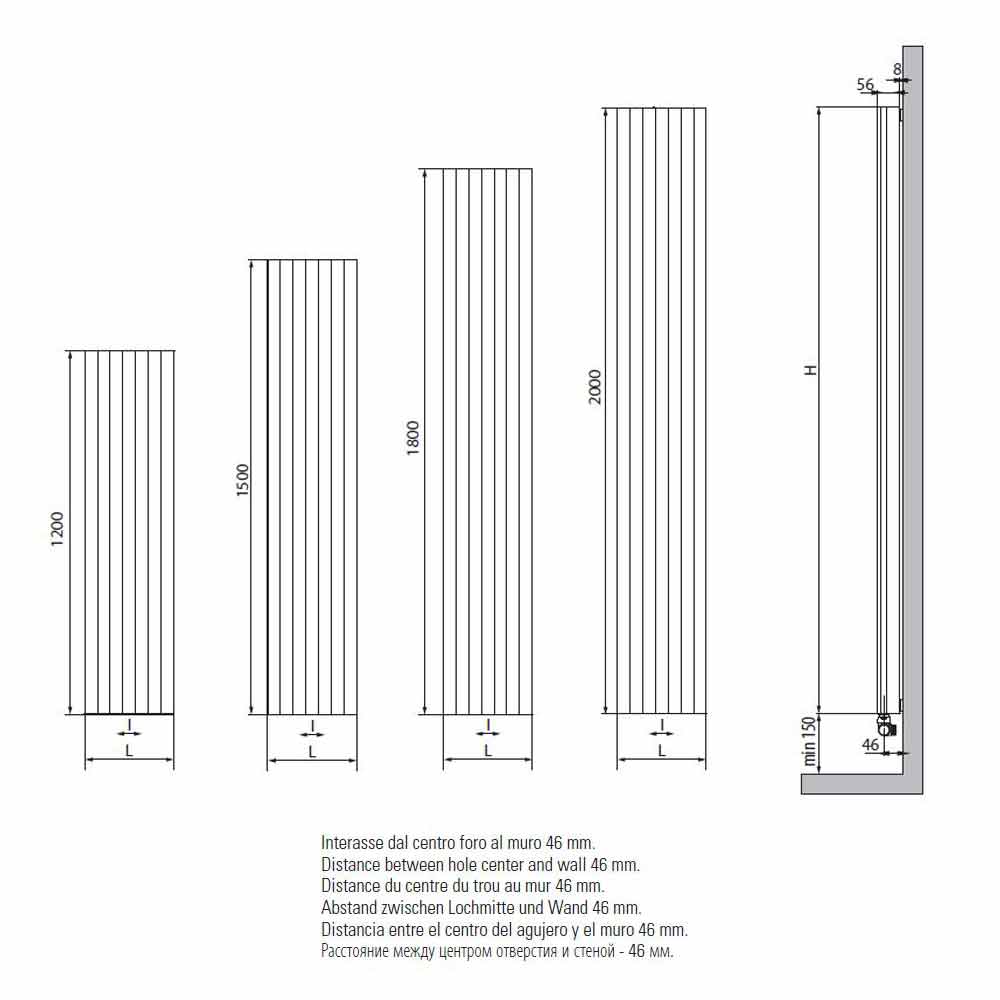 Disponibil în diferite dimensiuni *:- H 1200 x L 293 x Inter. 50 mm x Ieșire w (Δt50 *) 420; Randament w (Δt30 *) 215; Randament w (Δ26 *) 182;