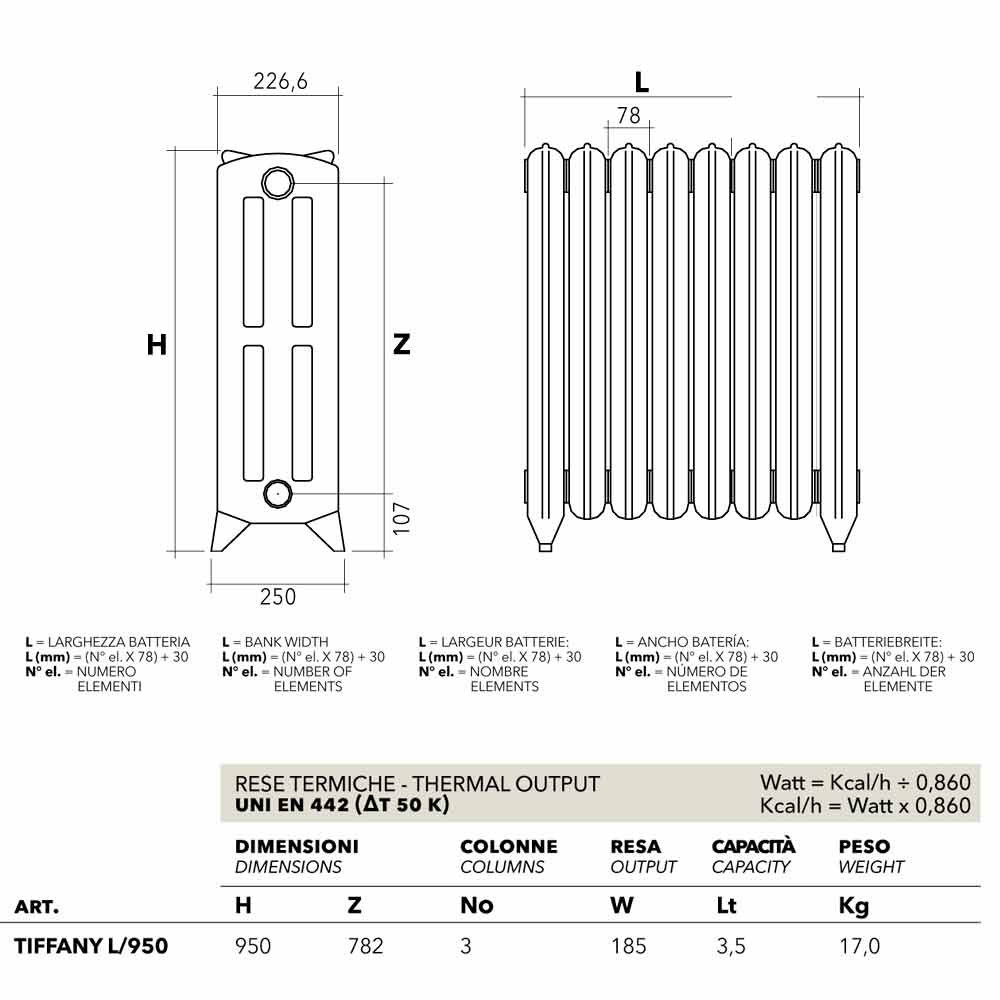 Elemente din fontă care pot fi asamblate, atenție la detalii, un stil unic: Tiffany este un calorifer care nu face compromisuri. Personalitatea sa exuberantă pune în valoare orice tip de mediu. Simbolul și funcția coincid în mod exemplar: bogăția decorului, sinuozitatea liniilor, moliciunea formei ies în evidență pe fundalul unei rigoare esențiale, geometrice. Tiffany încălzește mediul vizual și fizic.