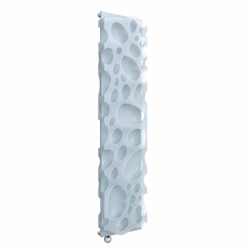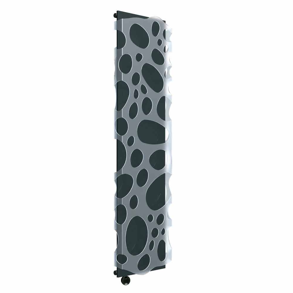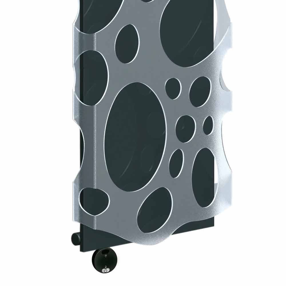 Radiator electric vertical modern, montat pe perete, din oțel și metacrilat, fabricat în Italia.