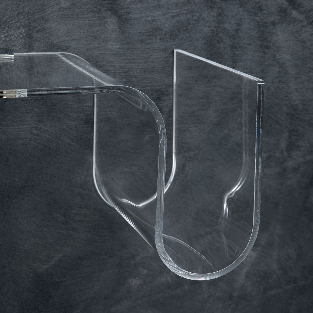 Se caracterizează prin linia laterală curbată ideală ca suport pentru reviste. Datorită transparenței și strălucirii materialului, piesa de mobilier pare să plutească suspendată în aer.