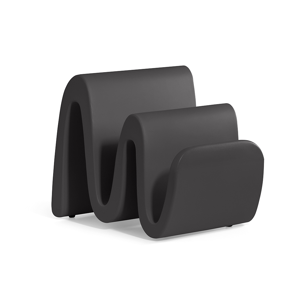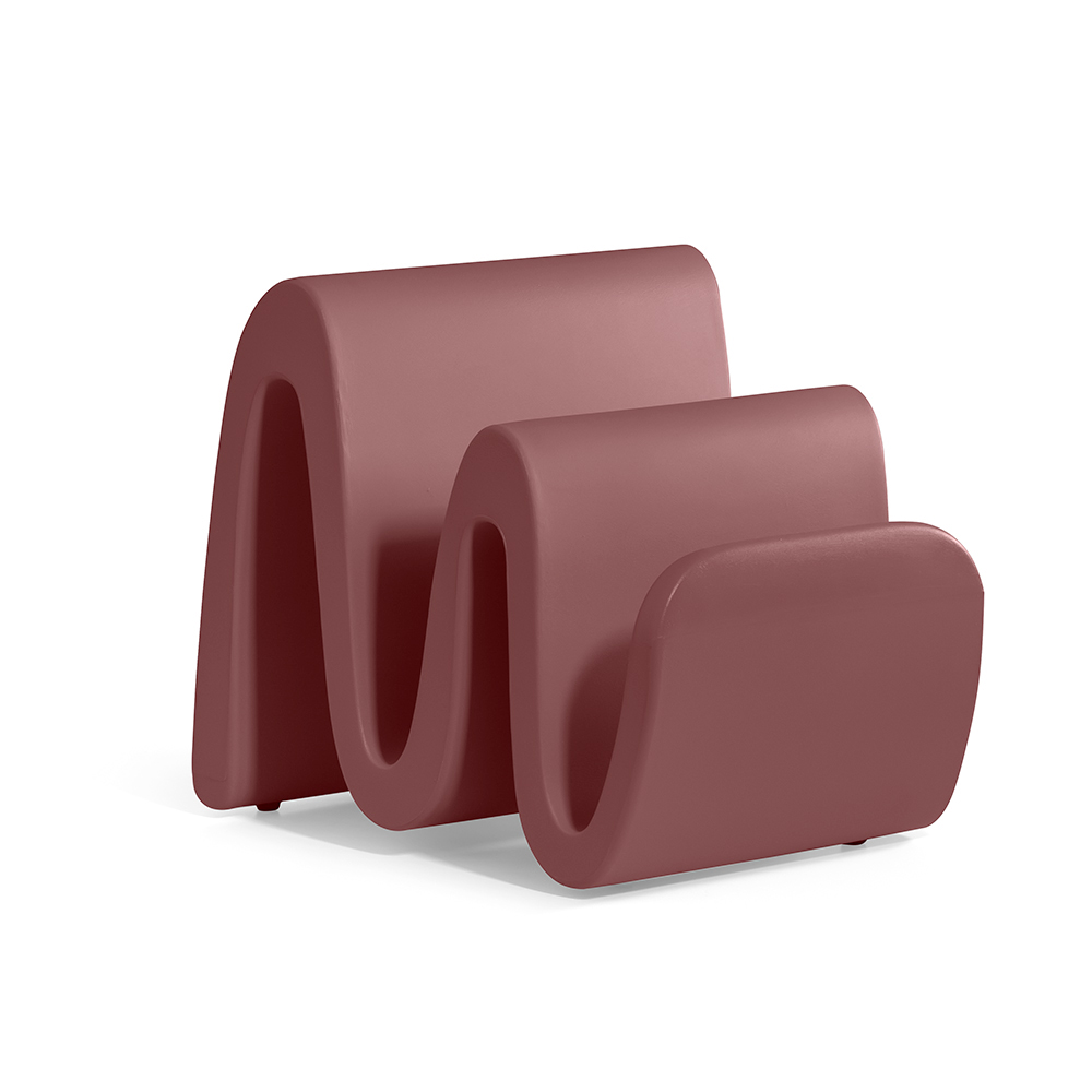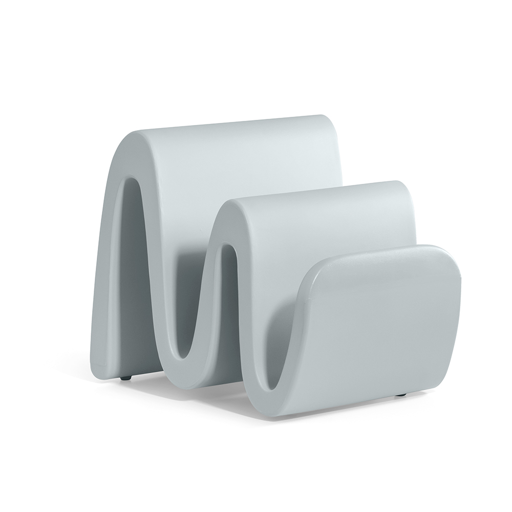 Acest suport pentru reviste realizat în întregime în Italia din polietilenă colorată se caracterizează printr-un design rafinat și o formă deosebită care amintește de un val mic. Extrem de funcțional , acest suport pentru reviste este un accesoriu de mobilier potrivit oricărui mediu și spațiu interior capabil să capteze atenția datorită stilului său minimal, dar contemporan și captivant .