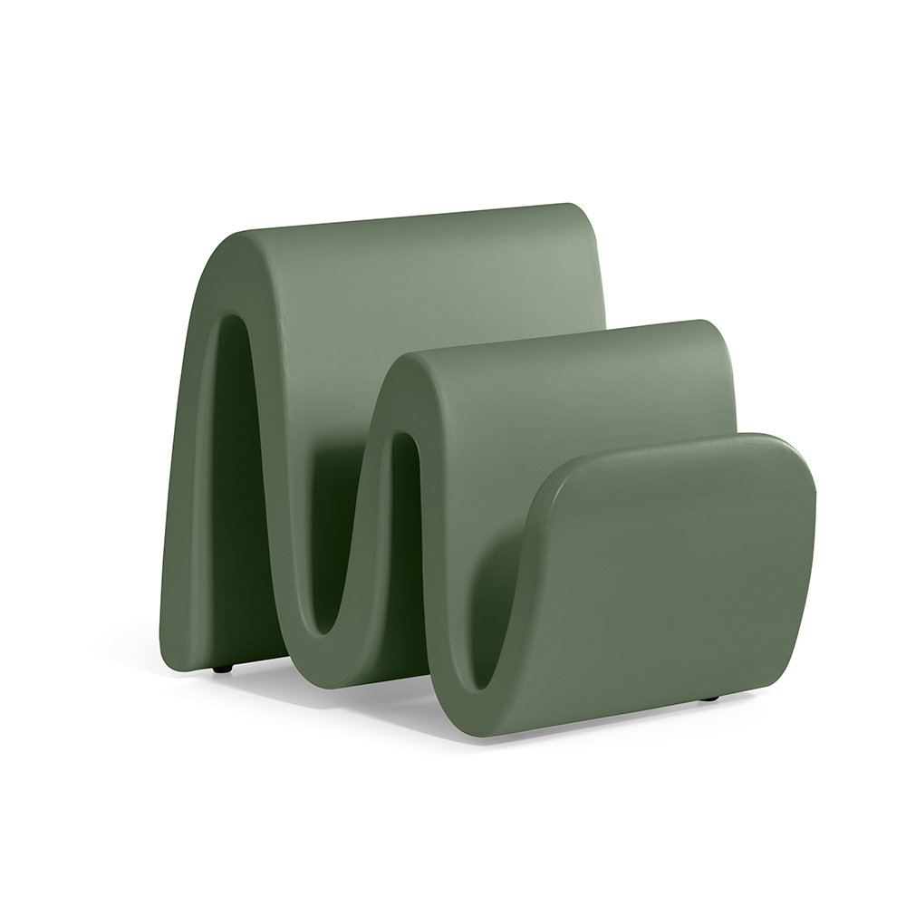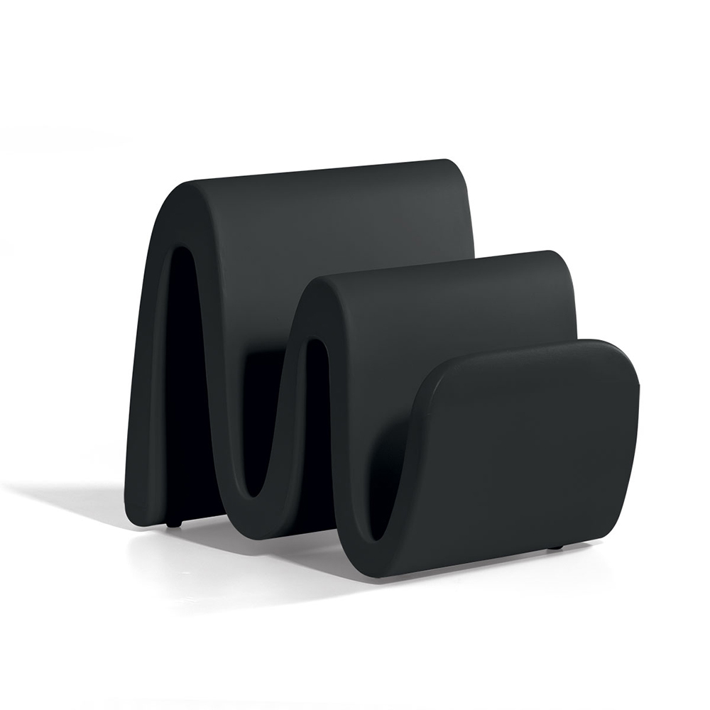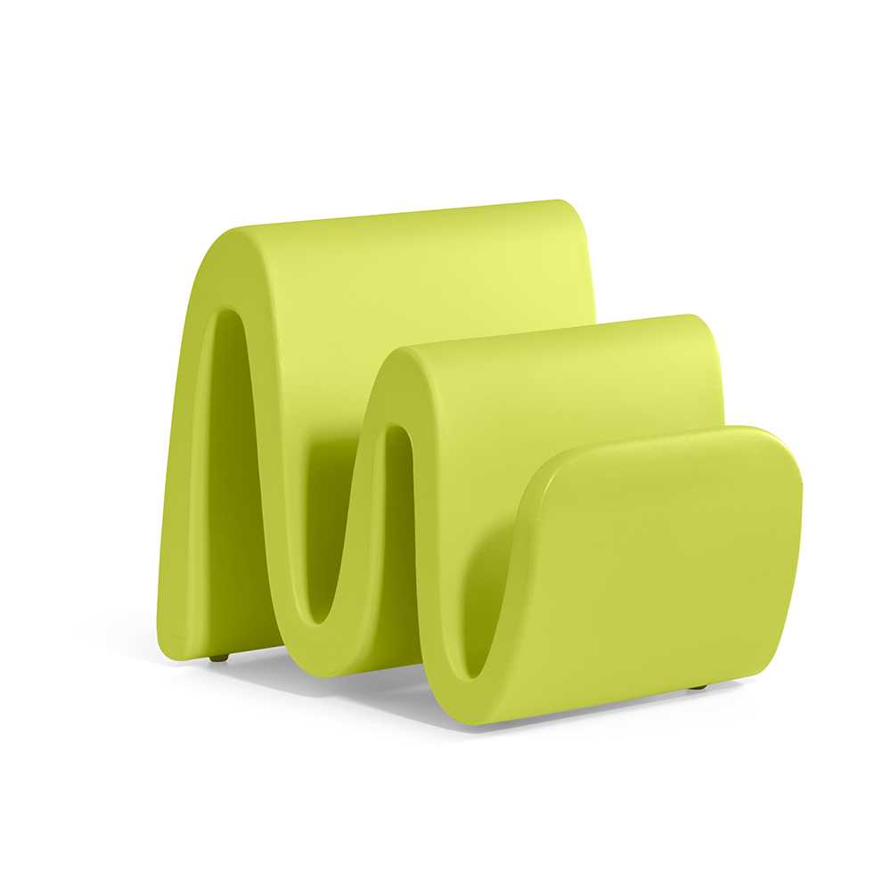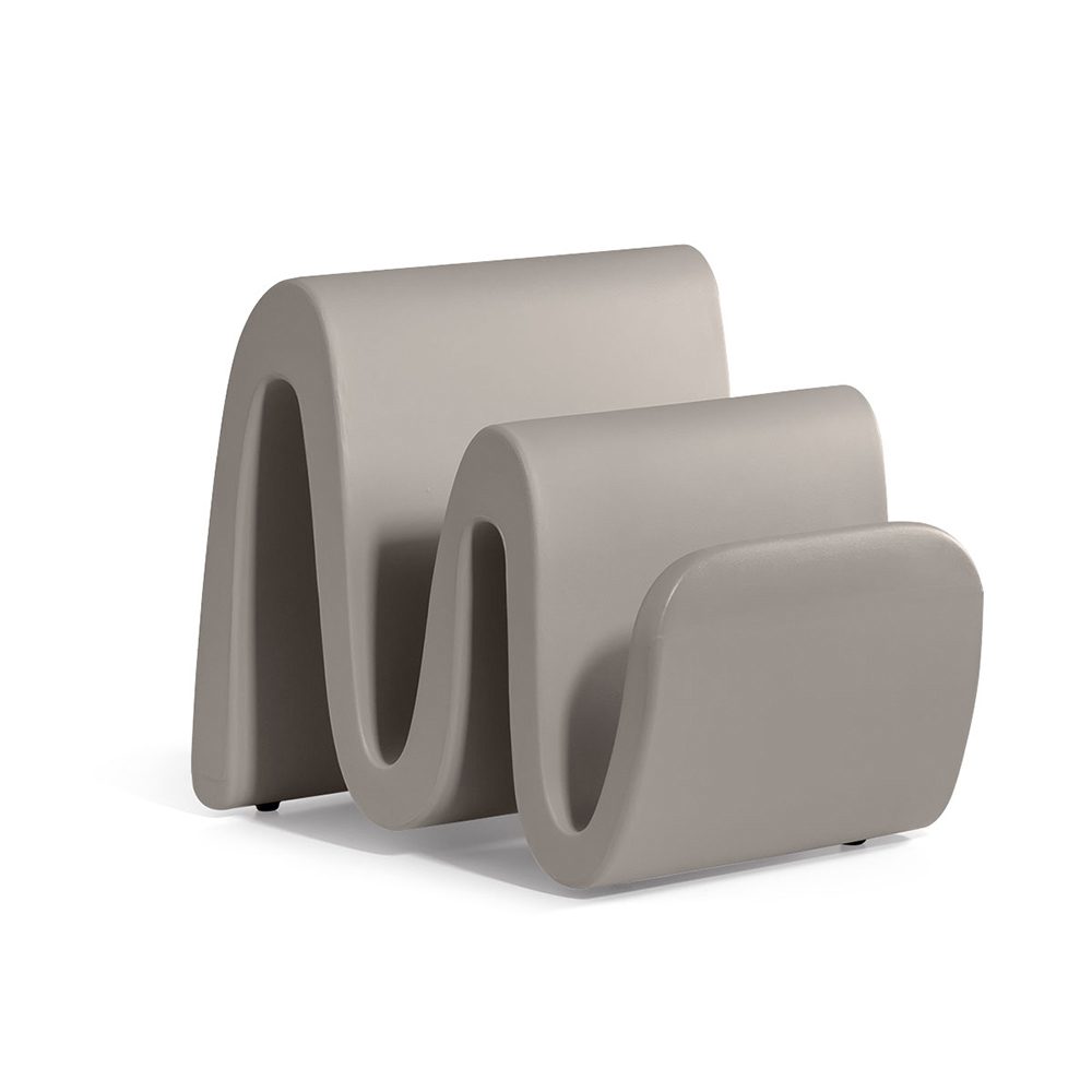 Acest suport pentru reviste realizat în întregime în Italia din polietilenă colorată se caracterizează printr-un design rafinat și o formă deosebită care amintește de un val mic. Extrem de funcțional , acest suport pentru reviste este un accesoriu de mobilier potrivit oricărui mediu și spațiu interior capabil să capteze atenția datorită stilului său minimal, dar contemporan și captivant .