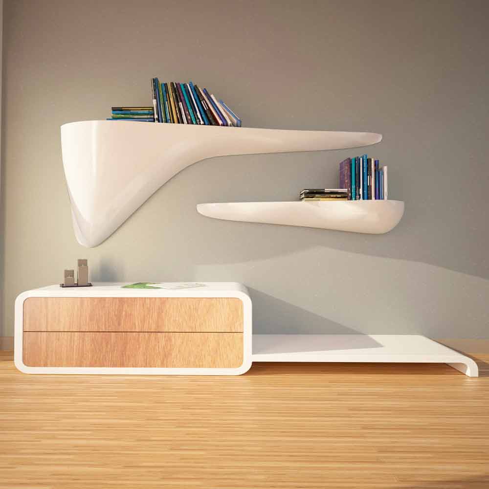 Sizzano este un raft cu o formă specială realizat în întregime din Solid Surface®; perfect pentru a decora medii cu originalitate si clasa.