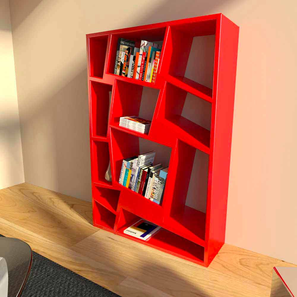 Foarte deosebite și de o caracter practic remarcabil, rafturile încrucișate care permit susținerea cărților precum și a altor obiecte, făcând această bibliotecă cu adevărat unică în felul ei și în formele sale.
