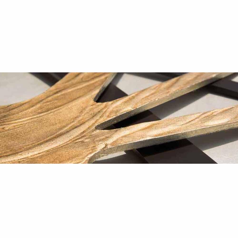 - panou colorat cu margele de perle, cu structuri curbate suprapuse si lucrari in relief, decorate manual cu frunze de aur si cafea lacuit