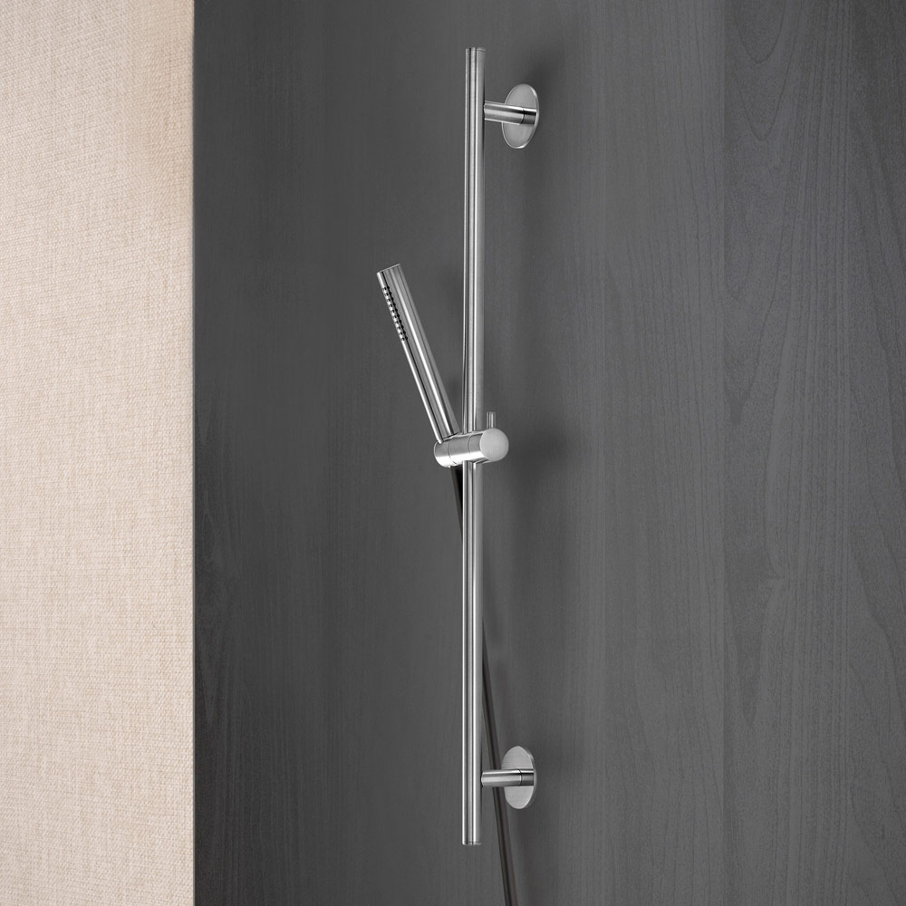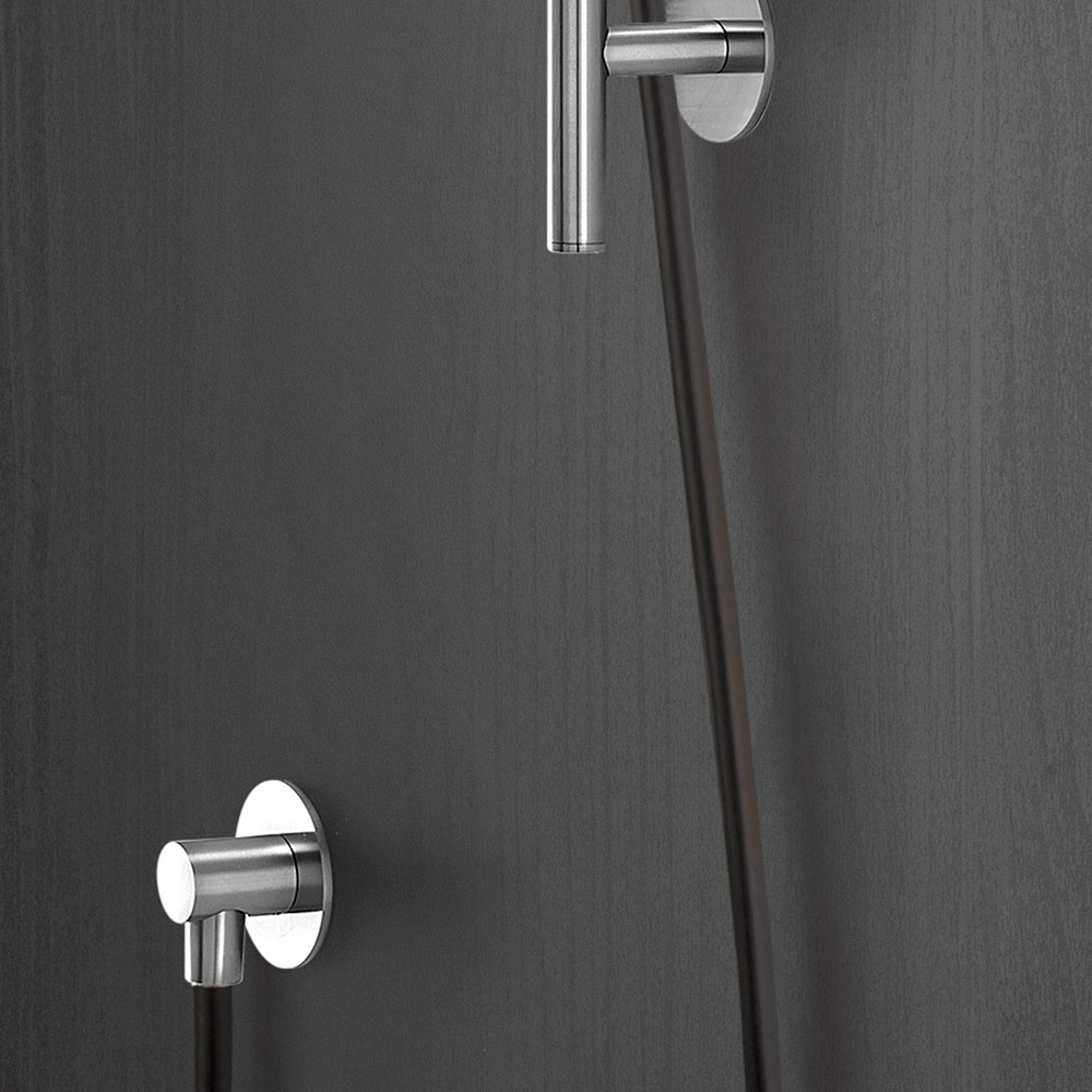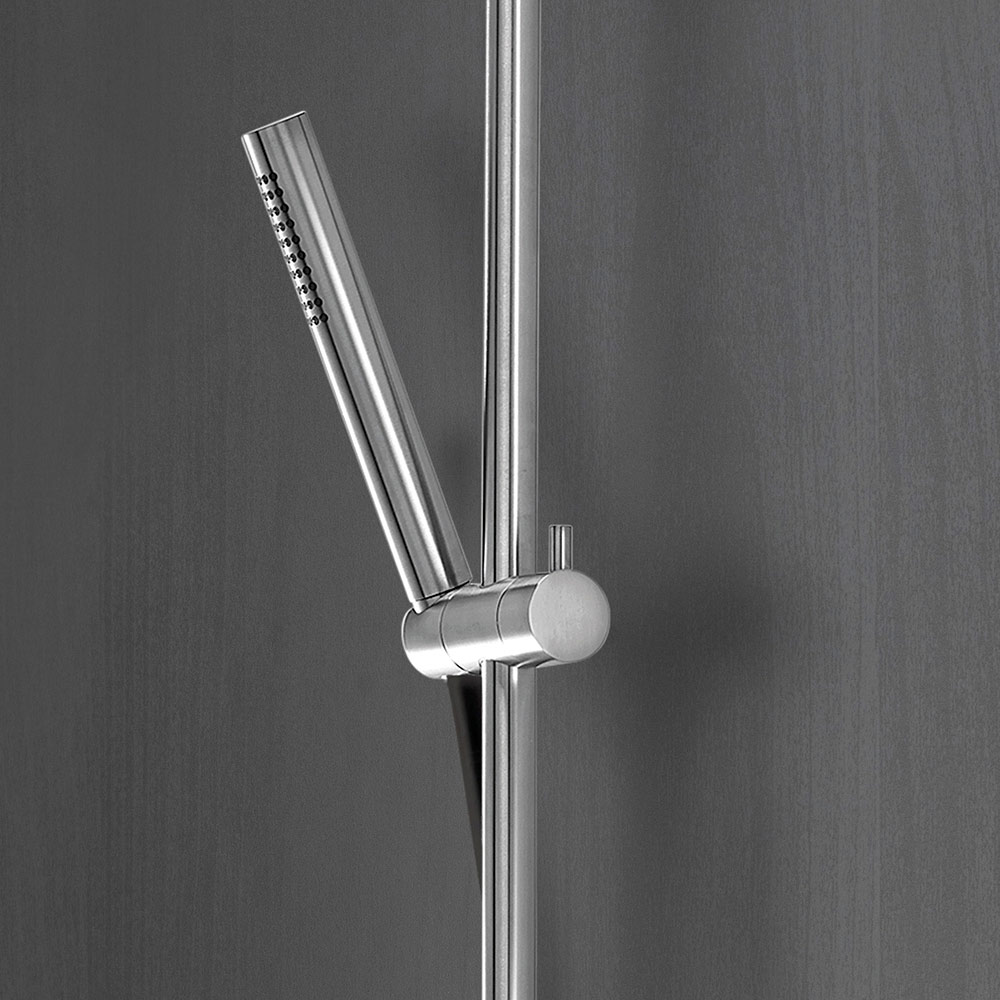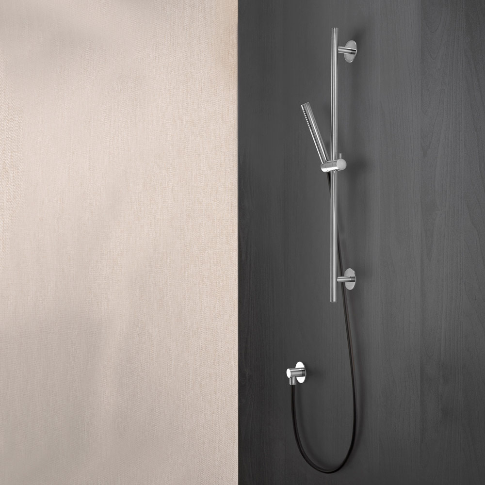 Sina de dus din otel compusa din: rampa cu tija de otel cu sectiune rotunda, cap de dus rotund din otel anticalcar, furtun flexibil darkflex anti-rasucire Fabricat in Italia