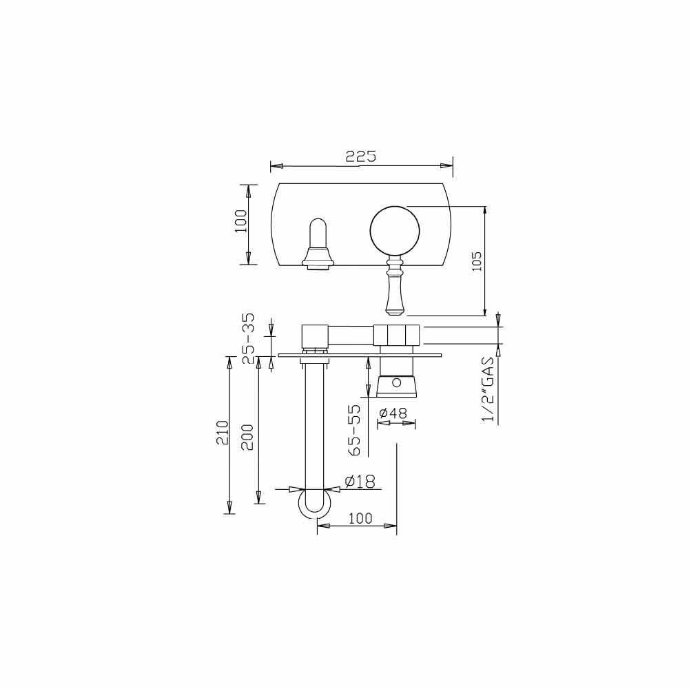 Baterie de lavoar montată pe perete cu o singură placă Made in Italy.
