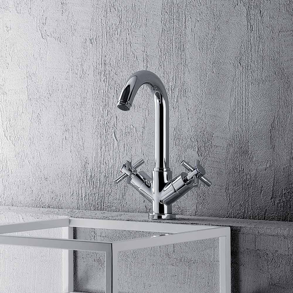 Baterie cu o singură gaură pentru chiuvetă de baie din alamă cromată Made in Italy.