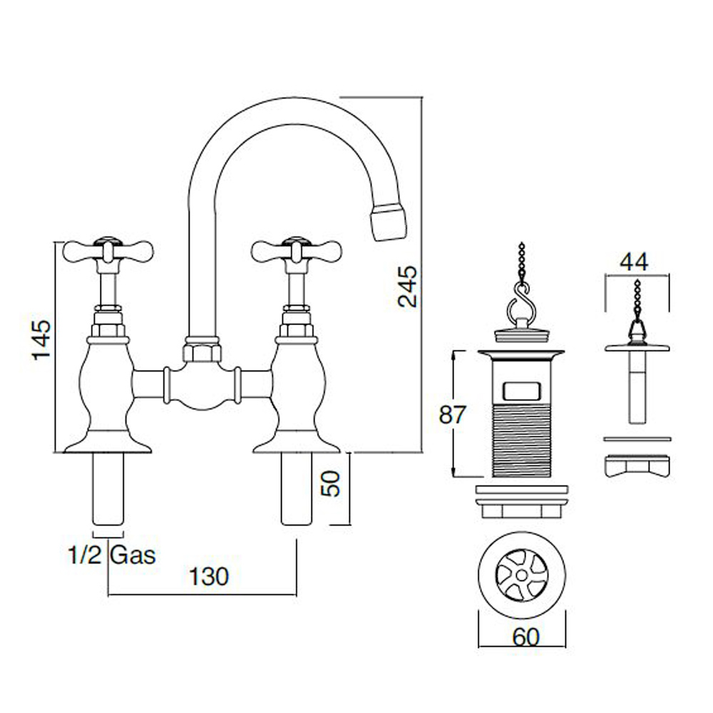 unitate de pod minimală pentru chiuvetă cu capac și lanț è în întregime