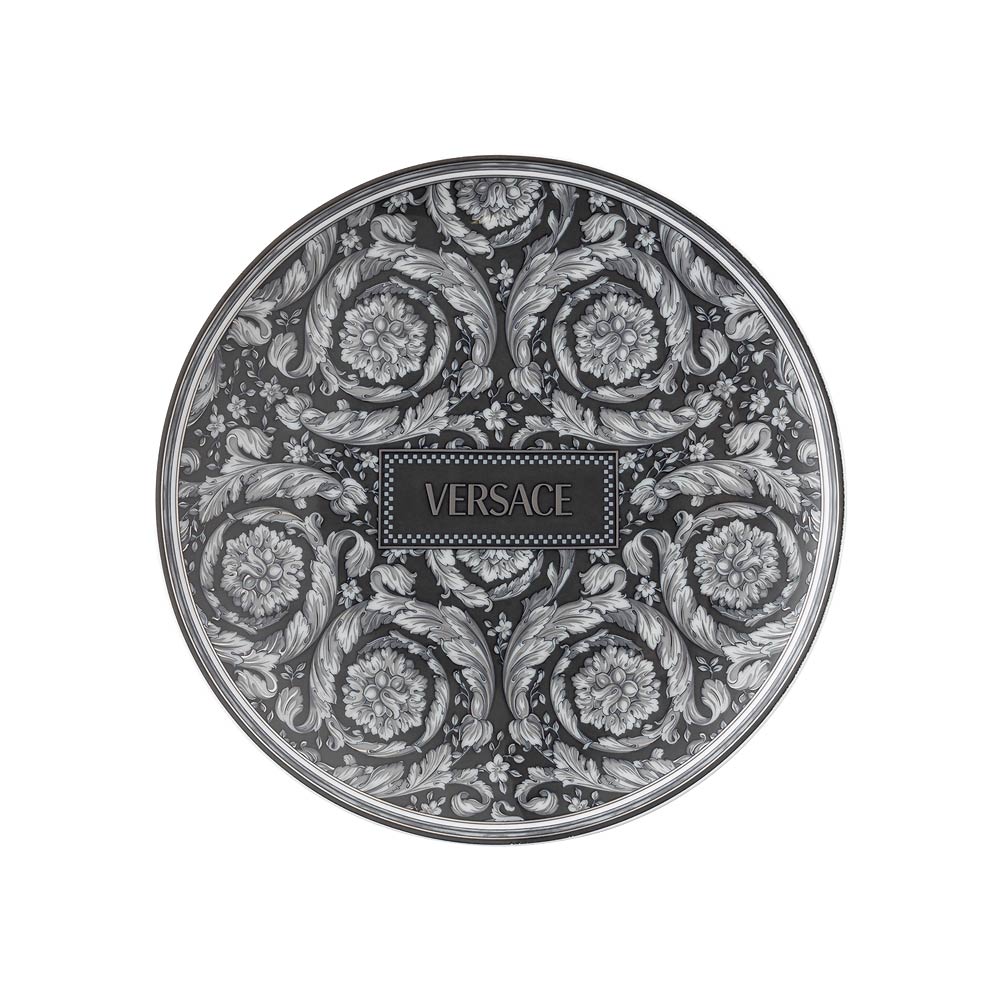 Această farfurie unică din porțelan surprinde esența luxului și a eleganței cu designul său complex de flori și suluri. Modelul floral în nuanțe de gri și negru adaugă o profunzime vizuală uimitoare, făcând din această farfurie nu doar un obiect funcțional, ci o adevărată operă de artă de expus.