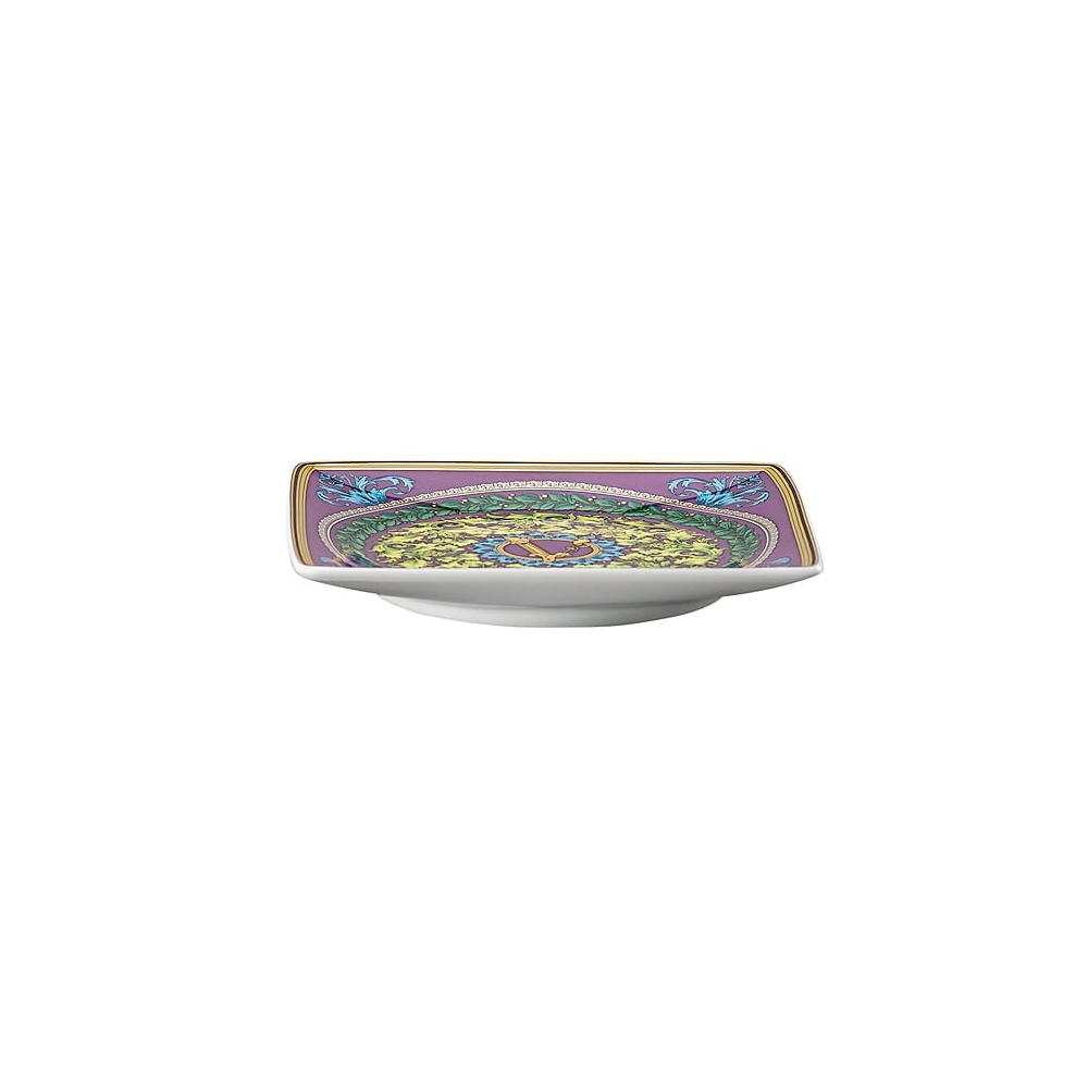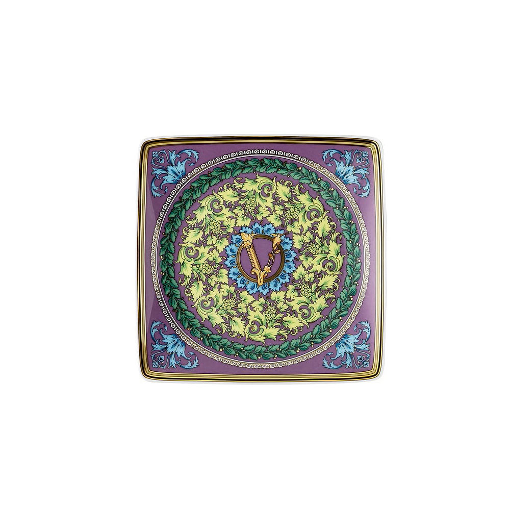 Vasul Barocco Mosaic de la Versace , din porțelan fin , este o sărbătoare uimitoare a artei și luxului italienesc . Designul său captivant prezintă un mozaic baroc complicat, îmbogățit de nuanțe vibrante de violet, verde și albastru care se împletesc armonios în jurul simbolului central Versace „V” , o emblemă a eleganței și rafinamentului.
