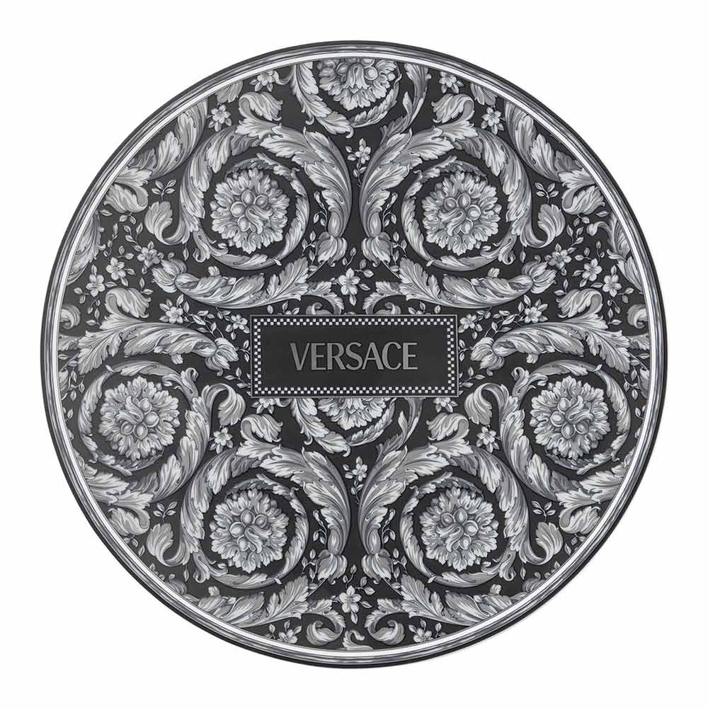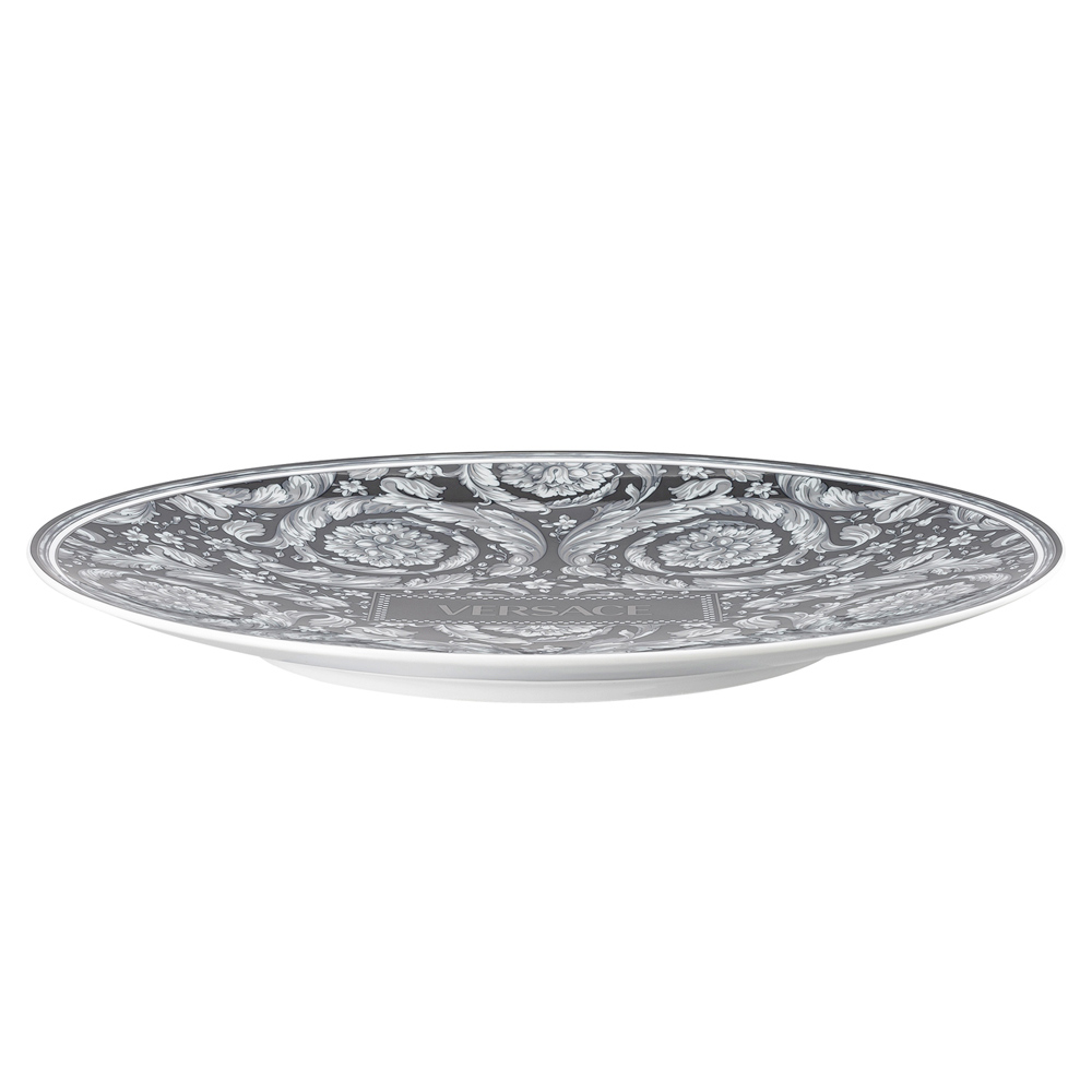 Această farfurie unică din porțelan surprinde esența luxului și a eleganței cu designul său complex de flori și suluri. Modelul floral în nuanțe de gri și negru adaugă o profunzime vizuală uimitoare, făcând din această farfurie nu doar un obiect funcțional, ci o adevărată operă de artă de expus.