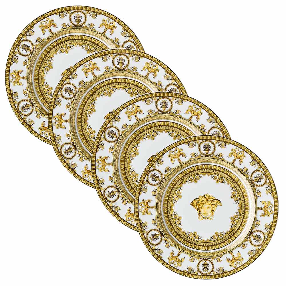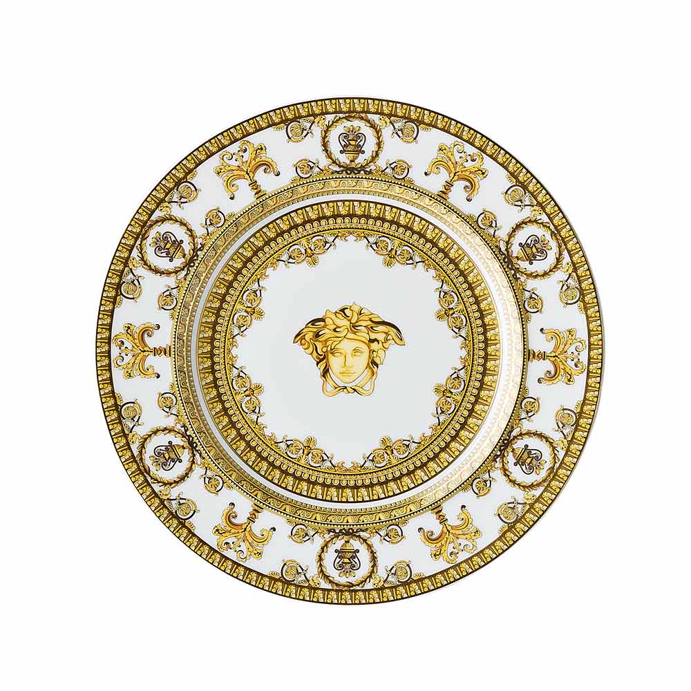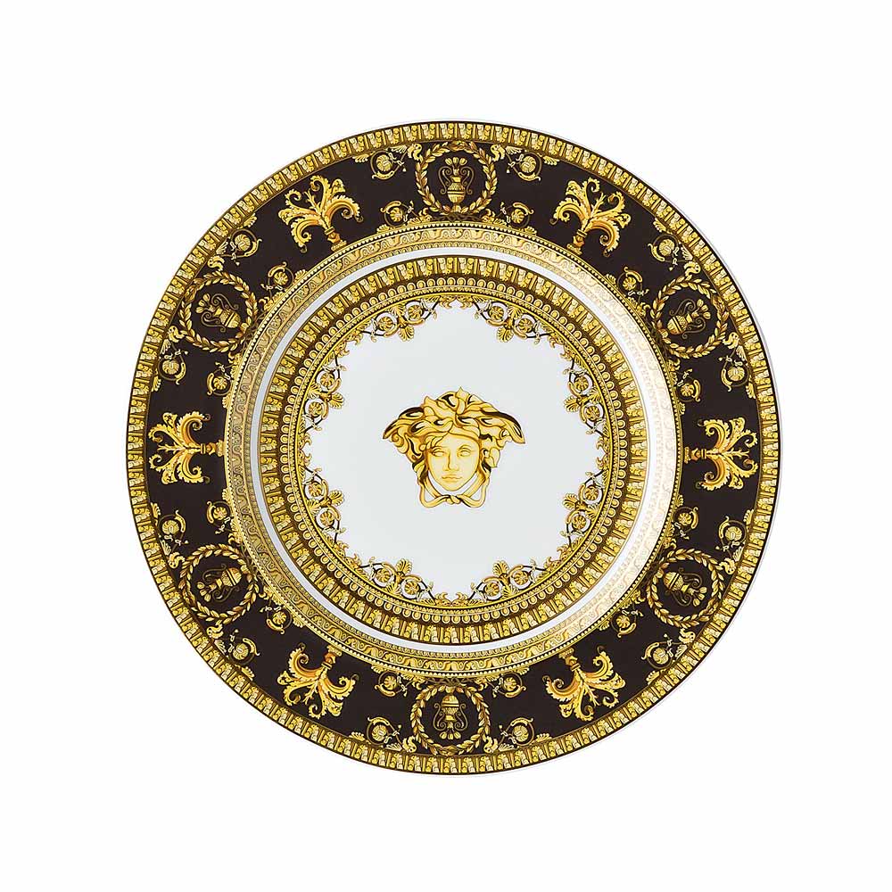 Farfuria de pâine Versace I Love Baroque , realizată din porțelan fin , este o odă adusă rafinamentului și opulenței atemporale tipice casei. Designul complex prezintă motive baroc aurii care se împletesc elegant pe un fundal alb sau negru, creând un contrast care îmbunătățește chipul emblematic al Medusei din centru. Fiecare detaliu este un tribut adus luxului și măiestriei Versace .