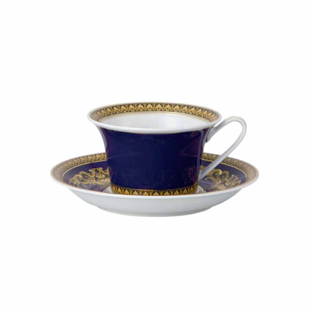 Ceașca de ceai și farfuria foarte stilată de la Versace face parte din colecția modernă elegantă care, combinată cu un glamour fascinant și rafinat, amintește de epoci trecute și se exprimă în nuanța strălucitoare de albastru și ia numele de Medusa Blue.