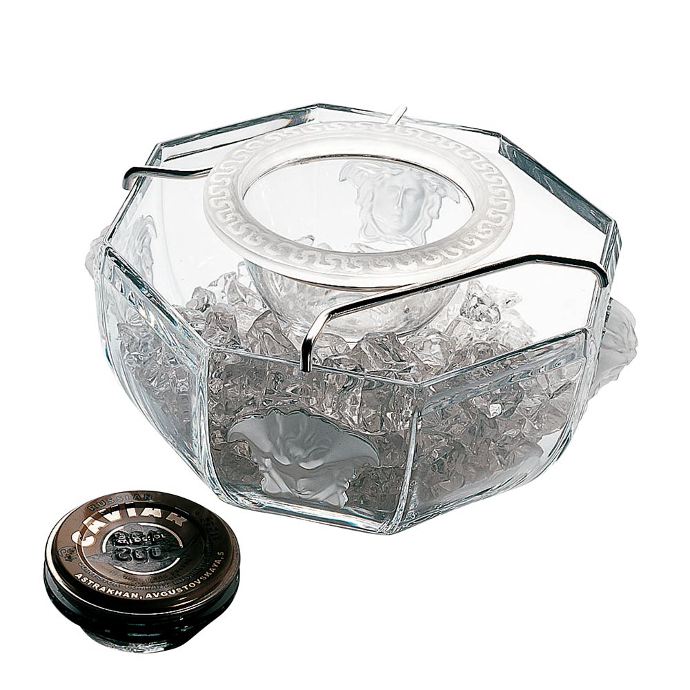 Răsfățați-vă cu sofisticarea pură a castronului cu caviar Medusa Lumière de la Versace , o capodopera din cristal pur care îmbină eleganța atemporală cu luxul modern . Această piesă exclusivă, împodobită cu chipul emblematic Medusa în relief, este concepută pentru a îmbunătăți fiecare detaliu al mesei dvs., făcând fiecare ocazie unică. Transparența cristalului contrastează frumos cu detaliile decorative, în timp ce structura fațetată adaugă o notă de somptuozitate și strălucire.