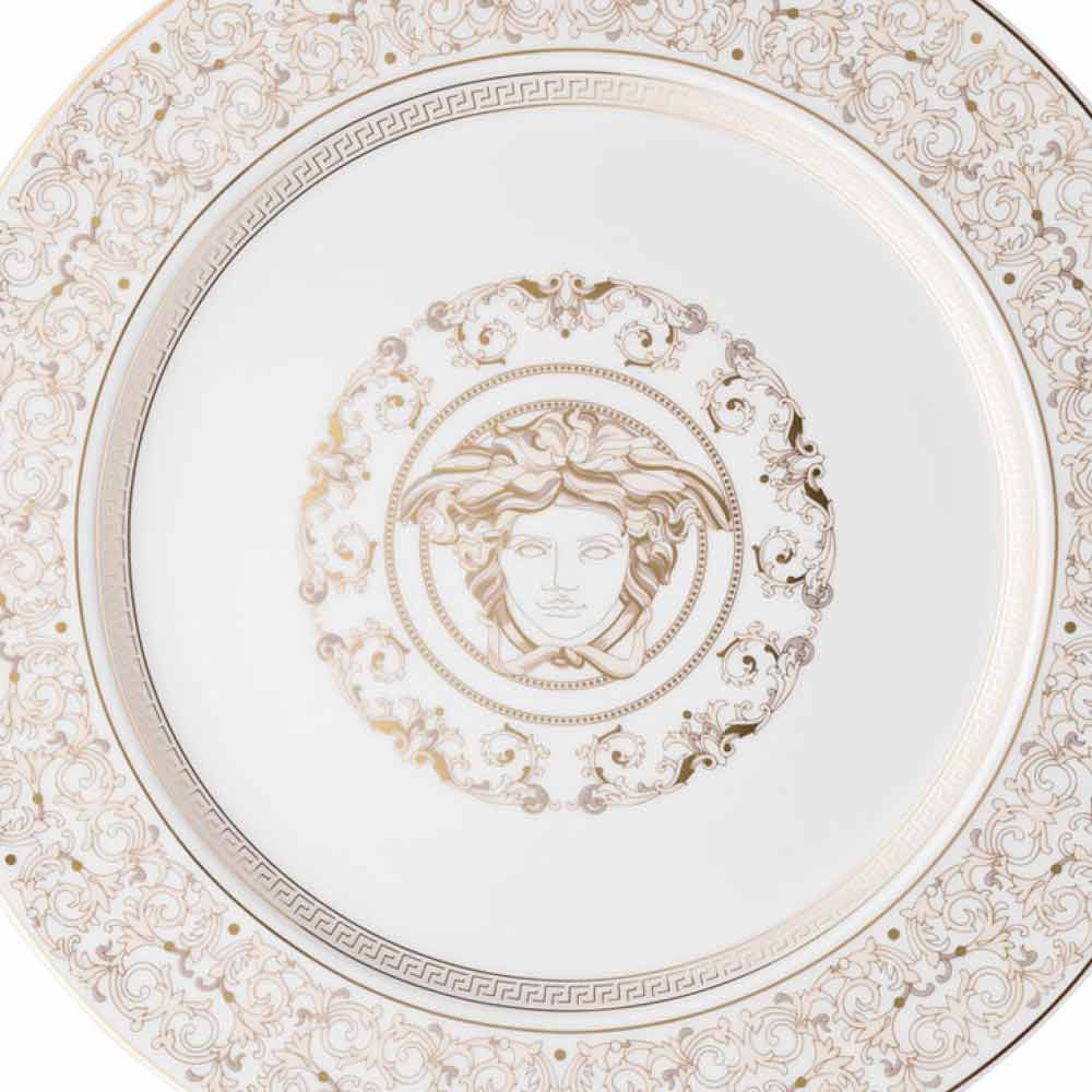 Fabuloasa farfurie de 30 cm de la Versace face parte din colectia rafinata si luxoasa de mese Medusa Gala.