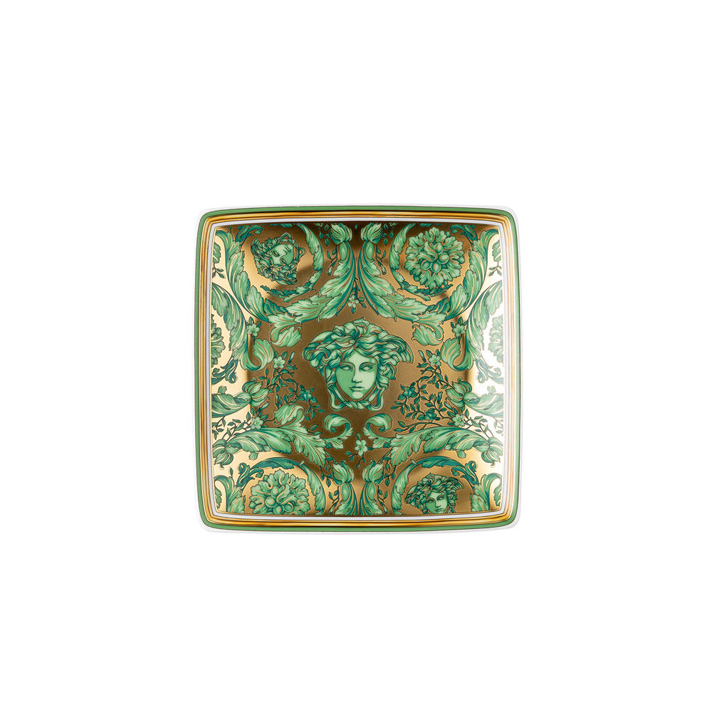 Adăugați o notă de rafinament de Crăciun mesei dvs. cu uimitorul bol de Crăciun Medusa Garland de la Versace , realizat din porțelan de înaltă calitate . Designul somptuos combină modele baroc complexe și detalii aurii cu un verde strălucitor care evocă alura sezonului festiv, în timp ce emblematica Medusa domină cu o eleganță atemporală.