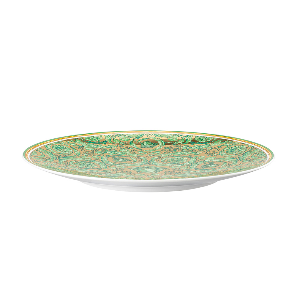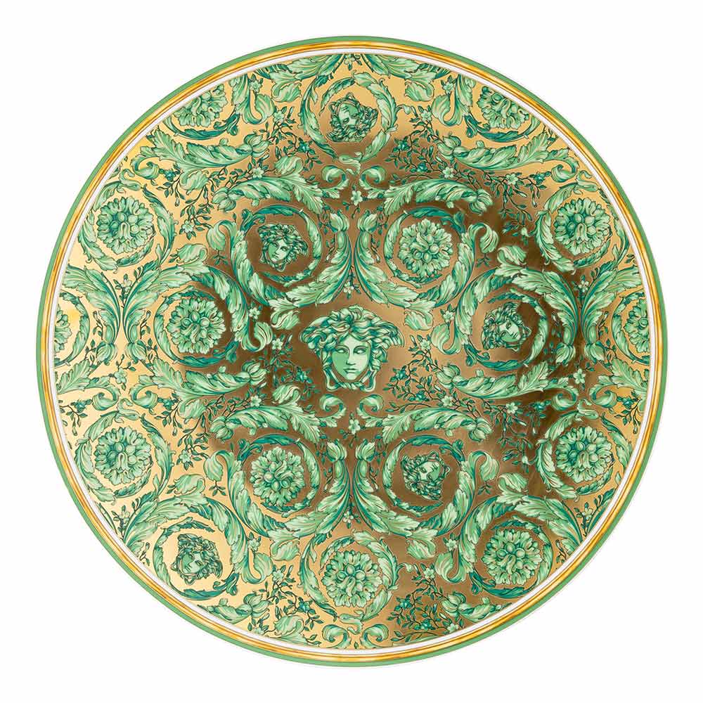 Tonurile de verde smarald și motivele baroc împletite creează o atmosferă somptuoasă și primitoare, transformându-ți masa într-o scenă de vis. Perfect pentru a adăuga o notă de glamour și rafinament meselor tale de Crăciun, este un obiect care îmbină tradiția și modernitatea cu stilul unic Versace.