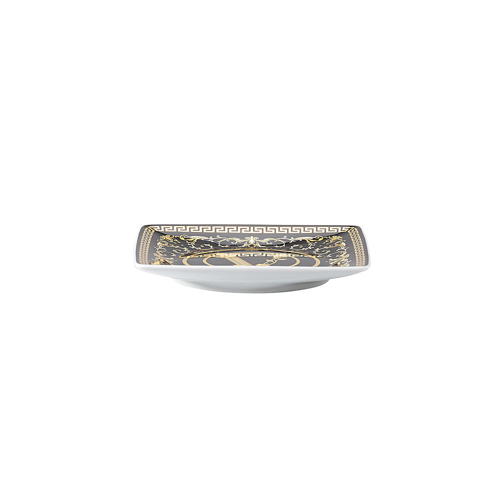 Cupele pătrate plate Virtus Gala de la Versace sunt combinația perfectă de design sofisticat și funcționalitate. Realizate din porțelan fin , acestea se remarcă prin fundalul elegant , lucios , împodobit cu detalii aurii în stil baroc, care includ simbolul emblematic „V” Versace, o emblemă a stilului și luxului atemporal .