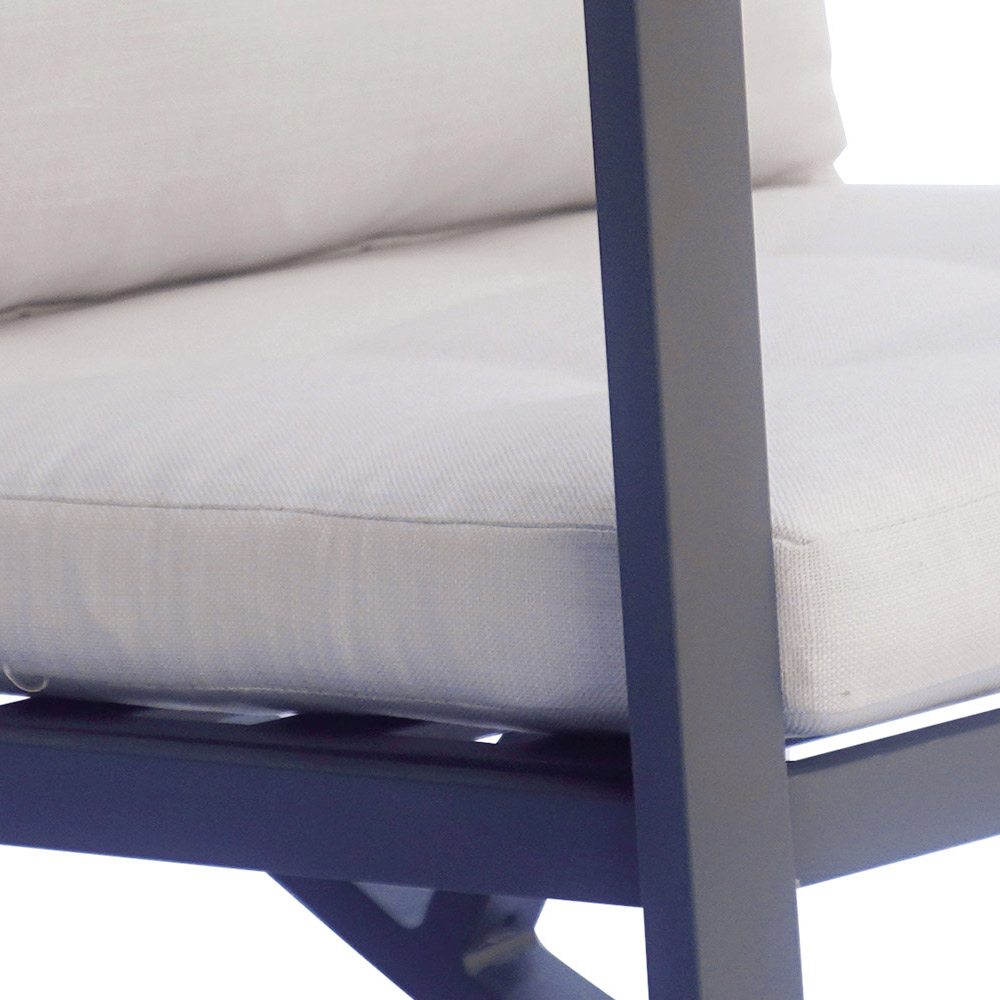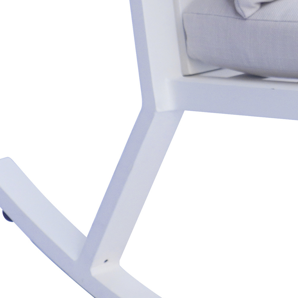 Adu o notă de eleganță modernă și relaxare sofisticată grădinii tale cu acest balansoar contemporan . Conceput pentru a îmbina stilul și confortul, acest scaun este realizat cu un cadru robust din aluminiu care asigură durabilitate și întreținere ușoară. Designul minimalist este asociat cu perne groase și moi, oferind confort superior și suport adecvat pentru perioade lungi de relaxare.