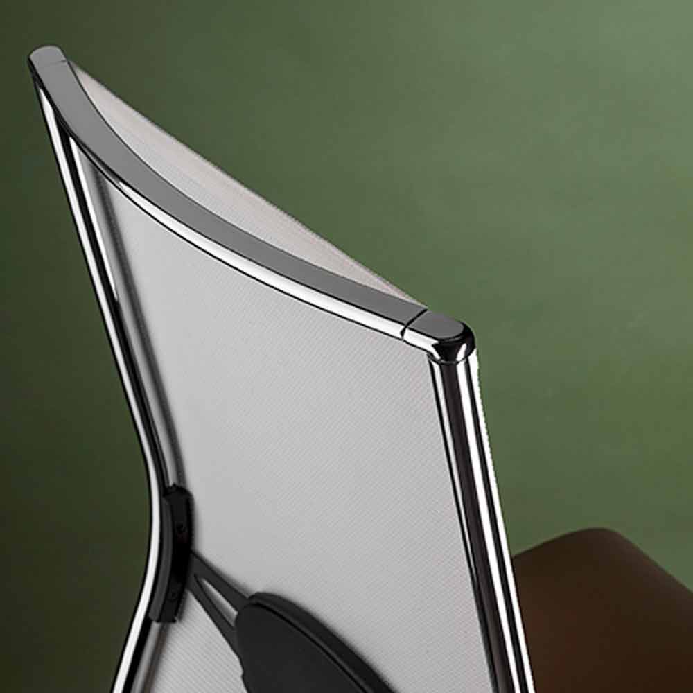 structură pivotantă din oțel și cu roți cu finisaje cromate strălucitoare, plasa elastică a spătarului și sistemul inovator de arcuri protejate din interiorul scaunului creează o simbioză de