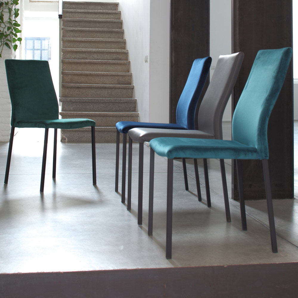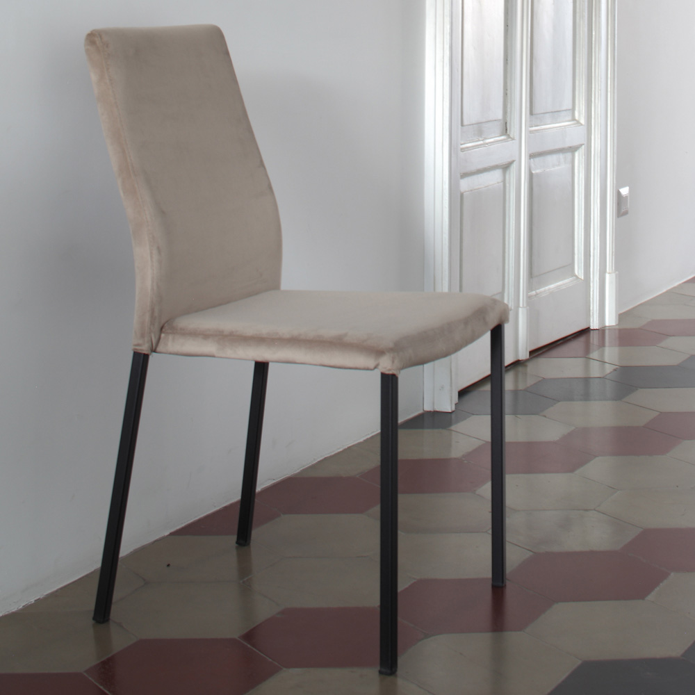 Scaun de sufragerie stivuibil format din Structura metalica vopsita in negru si scaun din catifea rezistent la pete . Rezultatul materialelor simple și de calitate care ajută la crearea unui produs perfect pentru orice mediu. Caracterizat printr-un design zvelt si elegant, acest scaun are linii simple si sinuoase, un stil curat si delicat ce imbina simplitatea si eleganta.