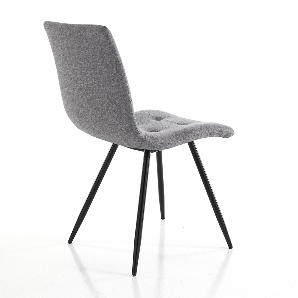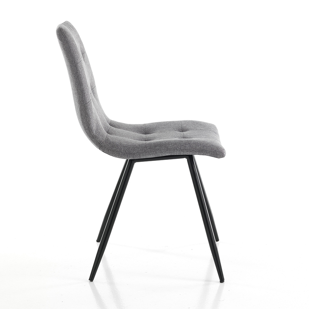 Scaun de bucatarie sau de sufragerie cu picioare din metal vopsit negru mat si sezut captusit imbracat in material gri . Se imbina perfect cu toate stilurile de mobilier modern, de la cel mai minimal la cel mai rafinat, conferind eleganta incaperii fara a-ti lua ochii de la masa de sufragerie care reprezinta punctul focal al mediului dar creand impreuna o minunata armonie de stiluri. pentru un rezultat original, rafinat și cu o puternică personalitate modernă .