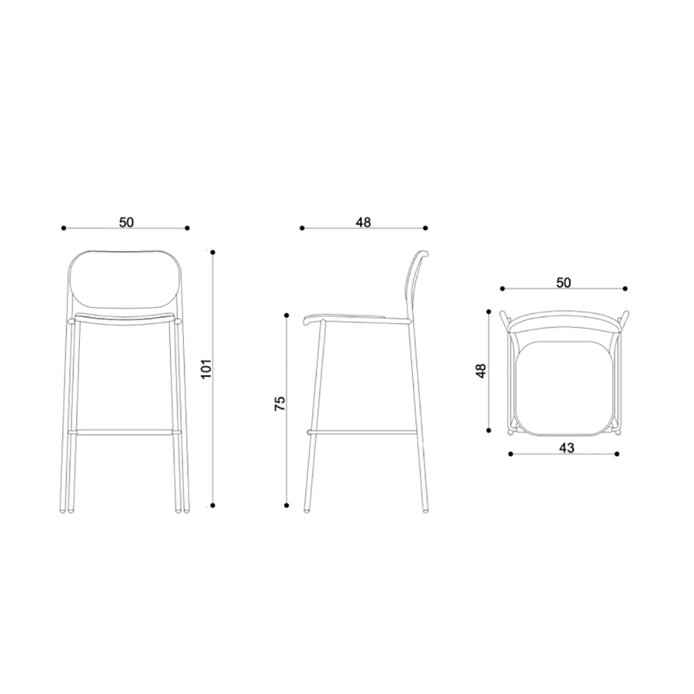NB : structura și tapițeria sunt disponibile într-o gamă largă de finisaje și țesături diferite. Scaunul este disponibil și în varianta de 91 cm înălțime.