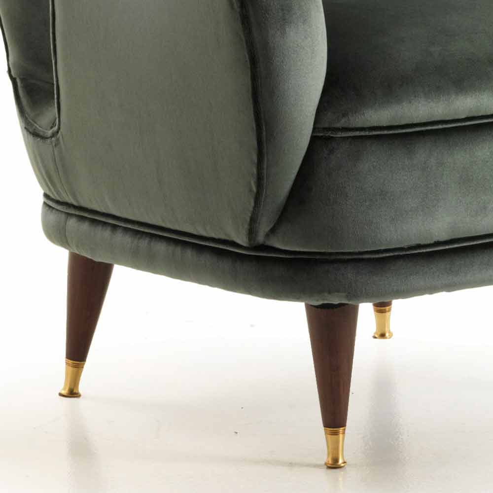 Tapițate cu cleme din alamă, patinate. Benny este inspirat de fotoliile Camera de un timp care a împrumutat de la formele sinuoase și senzuale și în picioare subțiri de lemn și conice. Perna scaunului, amplasat la o înălțime redusă, este compus dintr-o căptușeală groasă precum și spătar înalt și lat și cele două cotiere, oferind o experiență extraordinară de confort. Forma spătarului amintește în proporții curbe foarte feminine, delimitând o talie subțire, care lărgește alpinism în sus. A terminat în nuc american de culoare închisă.