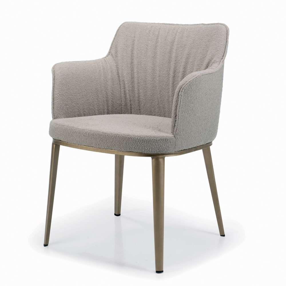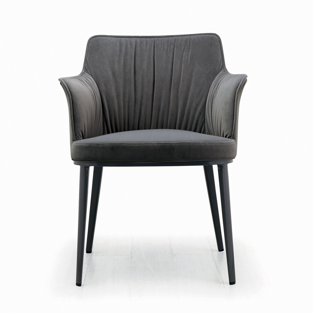 Scaun de sufragerie realizat cu sezut si spatar din otel imbracat complet in stofa sau catifea si picioare din otel lacuit. Esentialitatea si minimalismul sunt caracteristicile particulare ale acestui accesoriu de mobilier cu un stil contemporan conceput pentru cei care iubesc mobilierul simplu dar in acelasi timp cu un puternic impact vizual . Lejeritatea estetică marcată de formele sale este cea mai mare putere a sa, permițându-i să fie introdusă în orice context, părând mereu unic și original .