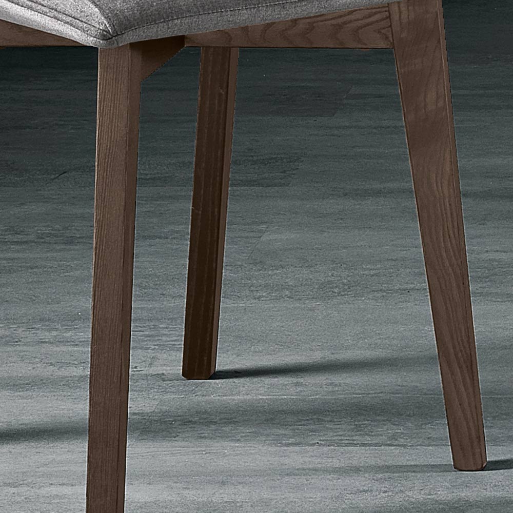 Picioarele din lemn de frasin oferă căldură și stabilitate, amintind de frumusețea și robustețea naturii. Designul piciorului înclinat nu oferă doar un aspect modern, dar asigură și o structură solidă și de lungă durată . Culoarea cenușie a țesăturii și cenușa coaptă a picioarelor se reunesc într-o îmbrățișare a stilului care poate completa orice tip de masă și decor interior.