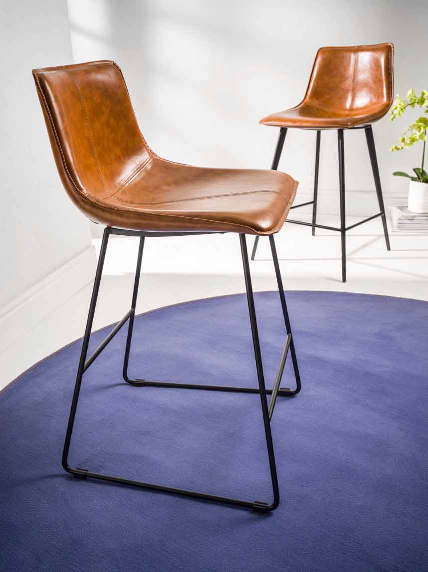 scaunul acoperit din piele ecologică cu efect de piele îmbătrânită, ceea ce îi conferă un aspect prețios cu referințe vintage și retro.