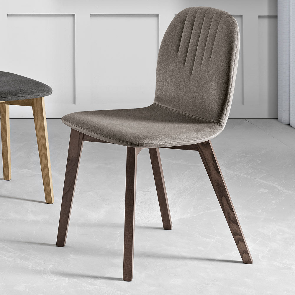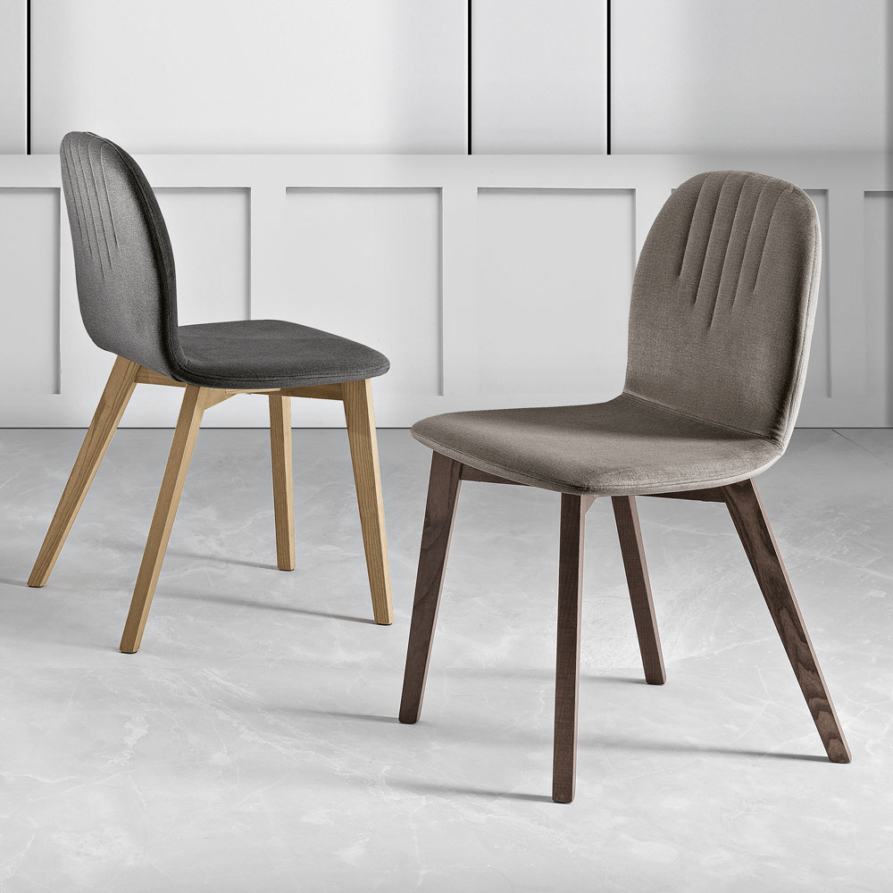 Acest scaun combină elegant tonul lemnului picioarelor sale cu culoarea scaunului din material textil. Designul modern, raționalizat al spătarului, înfrumusețat cu un model liniar delicat, adaugă o notă de clasă care ridică instantaneu orice masă sau spațiu de lucru.
