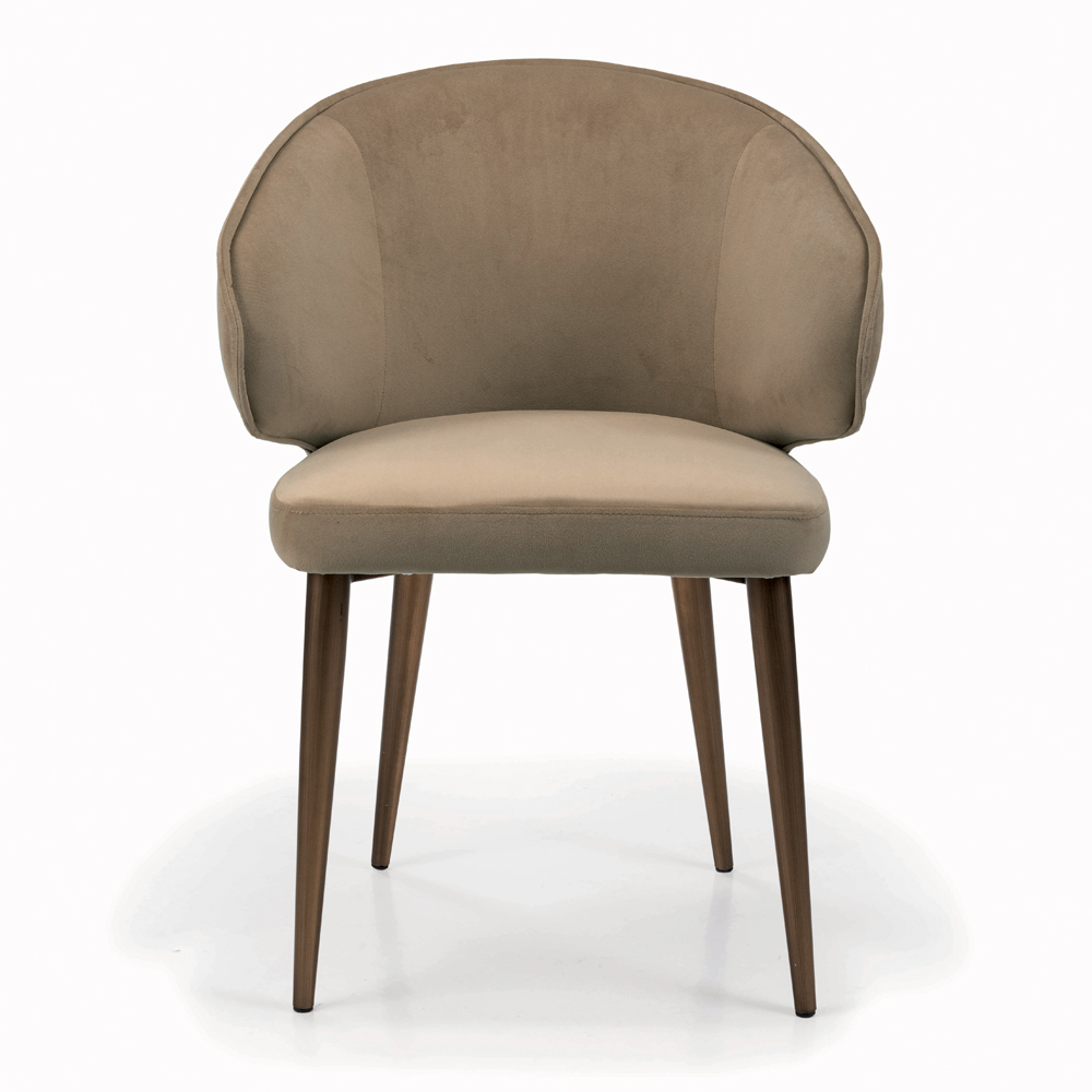Scaun de sufragerie realizat cu sezut si spatar din otel imbracat complet in catifea si picioare din otel lacuit sau lemn de frasin. Un accesoriu de mobilier care se adaptează cu ușurință oricărui context stilistic în care este inserat, contribuind la crearea unei atmosfere unice și de clasă . Lejeritatea estetica care ii caracterizeaza designul il face perfect pentru completarea spatiilor casnice precum mesele si bucatariile dar si zonele contract precum barurile si restaurantele cu personalitate prin formele sale simple si rafinate .