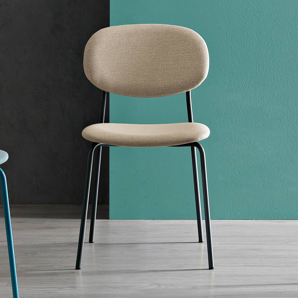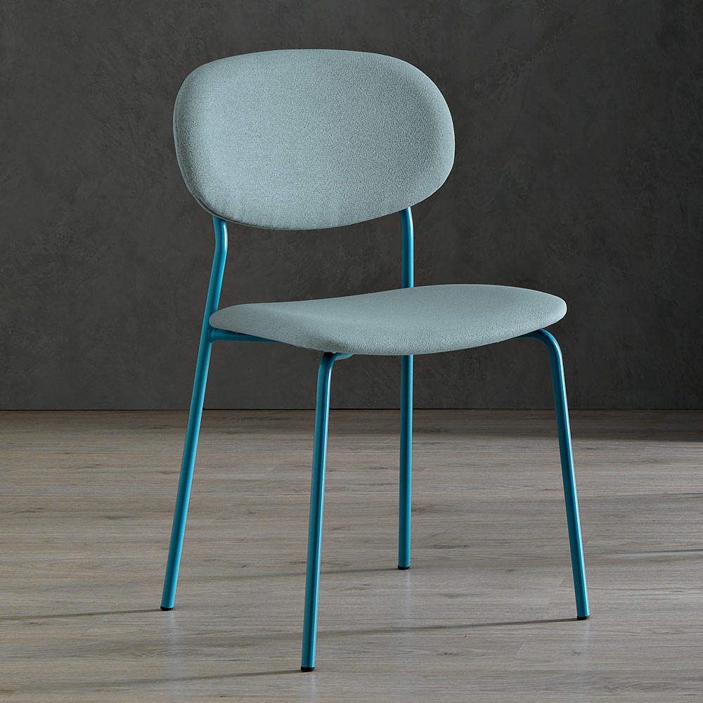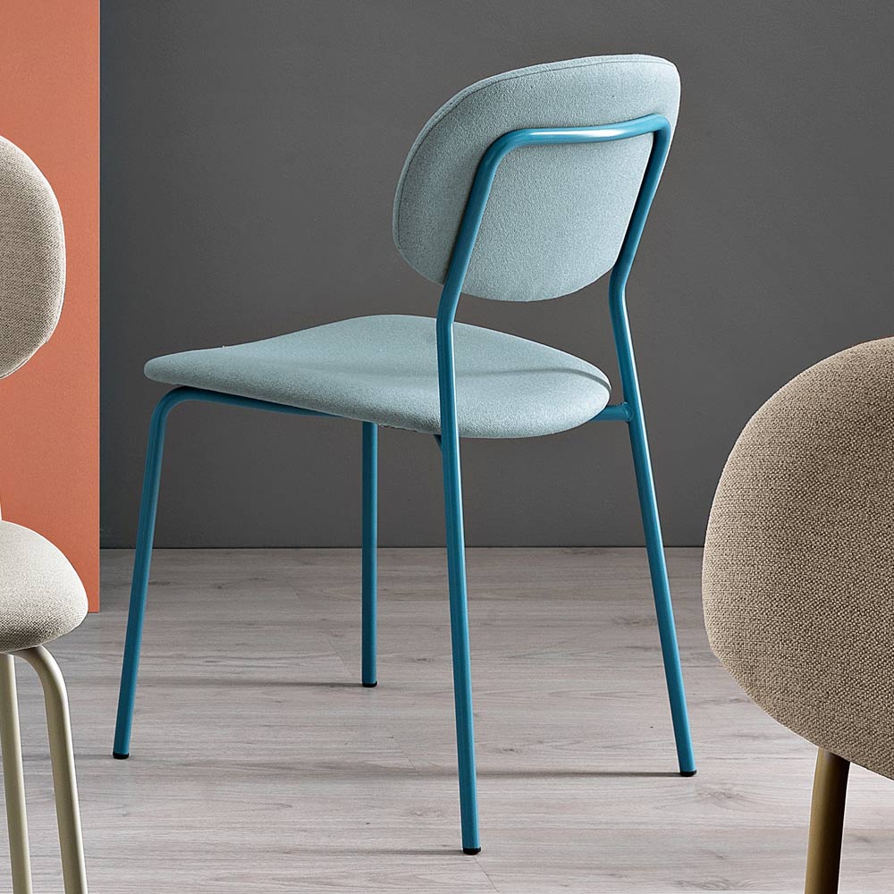 Cu silueta sa ergonomică , acest scaun este întruchiparea confortului. Picioarele metalice robuste dar elegante susțin designul sinuos al scaunului, oferind stabilitate fără a compromite estetica. Contrastul dintre culorile îndrăznețe ale scaunelor și structurile subțiri este o alegere conștientă care sporește versatilitatea designului, adaptabil la o multitudine de medii interioare.