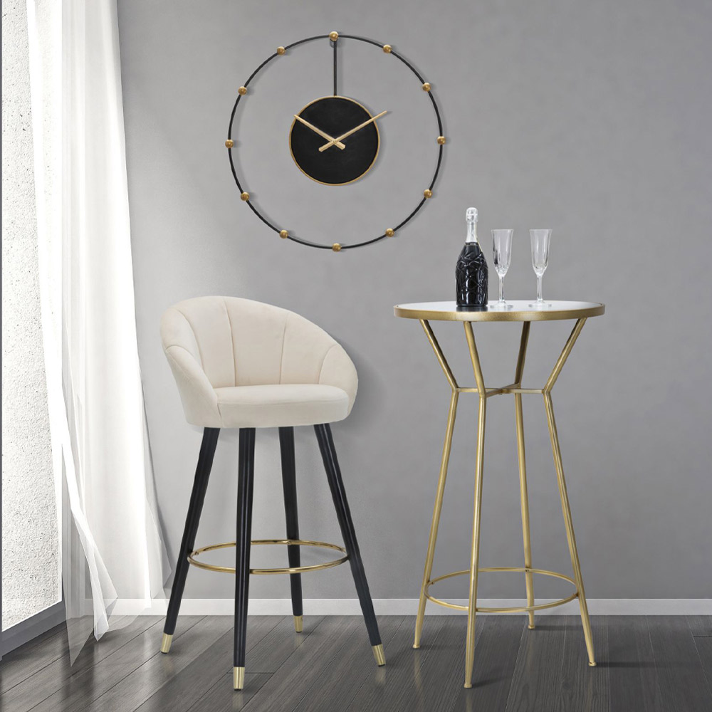 detalii de fier finisate în aur și scaun tapițat acoperit cu țesătură. Designul său este completat și făcut și mai funcțional prin suportul